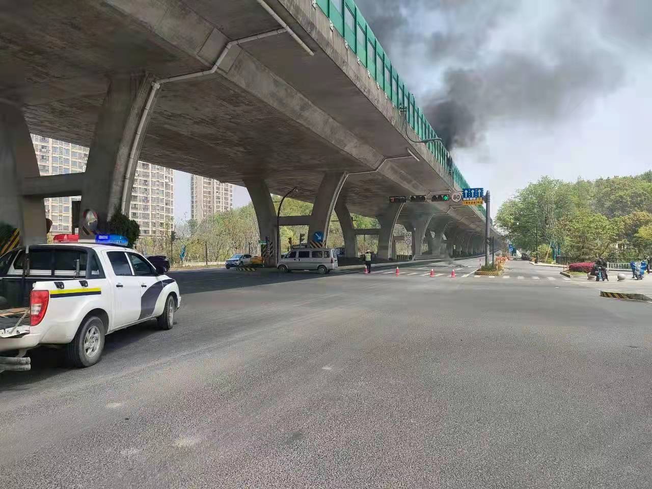 當(dāng)日12:30,馮奧、孫江永、方宜龍、張自強(qiáng)在中泰街道商貿(mào)城巡邏時(shí),看到杭徽高速塌陽橋路段有濃濃黑煙冒起,遂駕車前往查看。