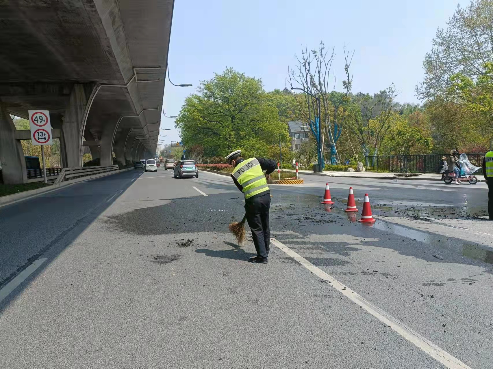 4月3日,浙江民泰駐中泰街道交警項(xiàng)目隊(duì)員及時(shí)協(xié)助撲滅高速路上火情。