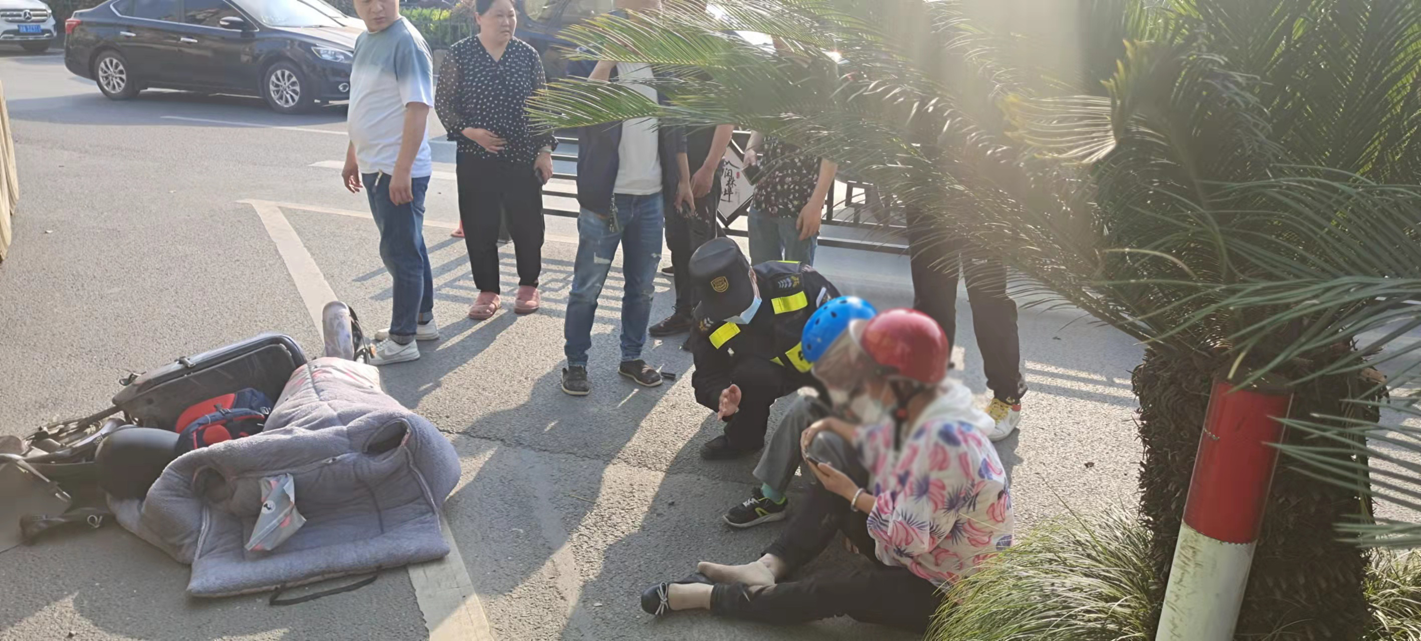 4月11日,浙江民泰駐閑林街道城管項(xiàng)目隊(duì)員董波、高勛熱心救助車禍?zhǔn)軅缸印?br />