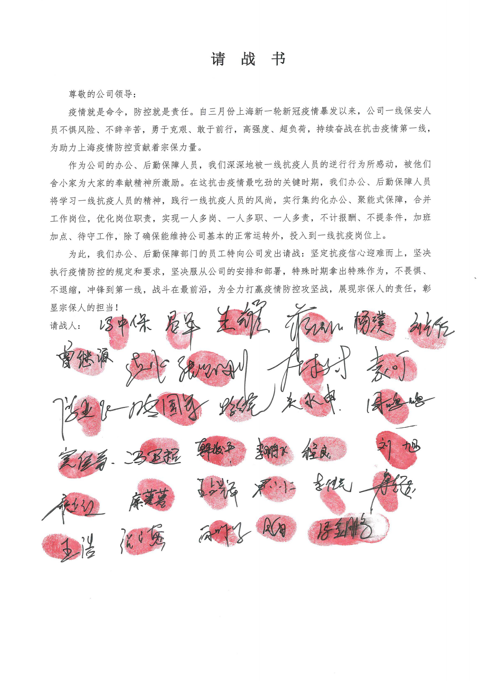 “在特殊時期,發(fā)揚特殊精神,展現(xiàn)特殊作為,彰顯特殊擔(dān)當(dāng)”。在上??挂哌M入嚴(yán)峻緊要關(guān)頭,宗保公司作為一家退役軍人創(chuàng)辦企業(yè),一邊是面對多方需要人力支援的請求,一邊是公司員工已全員投入連續(xù)奮戰(zhàn)的現(xiàn)狀,公司想方設(shè)法,在維持公司能基本運轉(zhuǎn)的情況下,積極動員公司辦公室、后勤保障人員,組成戰(zhàn)疫先鋒突擊隊,哪里最需要就往哪里去,哪里最艱苦就往哪里趕,全員全力前往一線抗擊疫情。