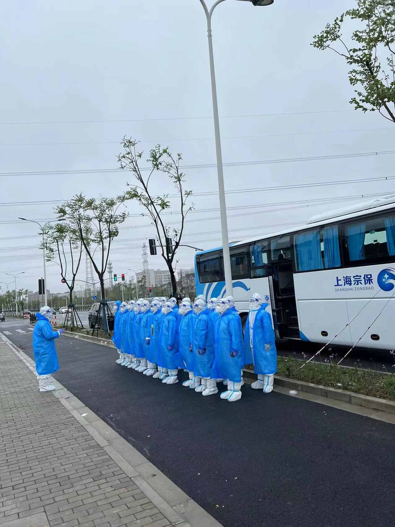 4月12日,宗保公司總經(jīng)理蔣德玉帶領(lǐng)公司首批戰(zhàn)疫先鋒突擊隊員出征浦東惠南陽性人員轉(zhuǎn)運站。4月14日,副總經(jīng)理楊璞帶領(lǐng)第二批突擊隊員奔赴北蔡,協(xié)助完成核酸檢測現(xiàn)場秩序維護、物資搬送、陽性病例轉(zhuǎn)運、集中隔離點消殺等任務(wù)。作為武警部隊團職自主擇業(yè)退役軍人,蔣德玉、楊璞用自己的實際行動詮釋了一名退役軍人的責(zé)任和擔(dān)當(dāng)。