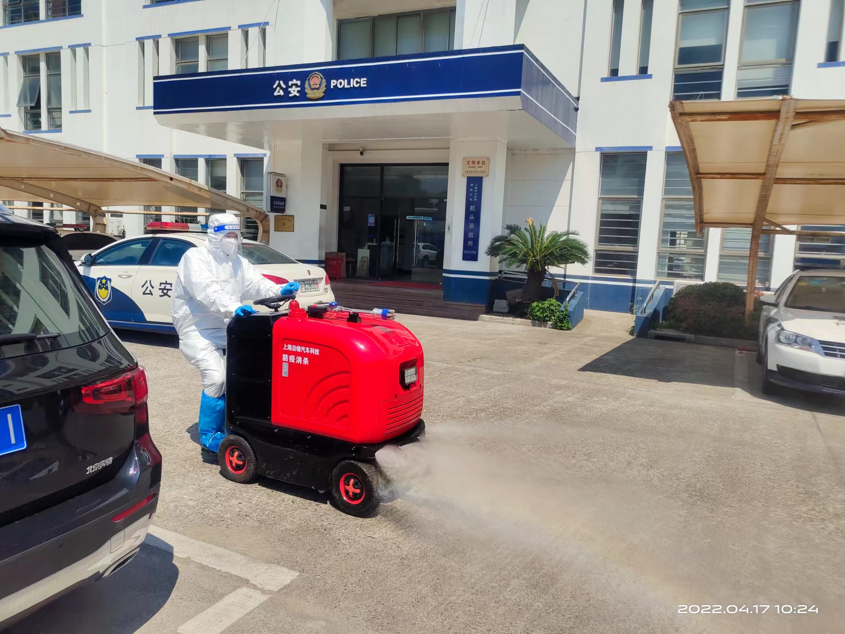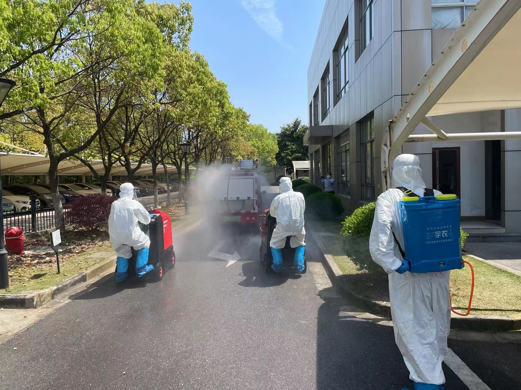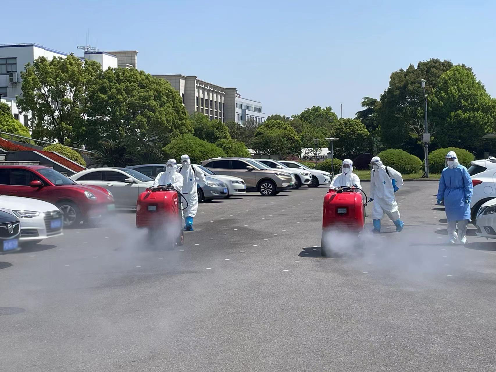 4月17日,根據(jù)航頭鎮(zhèn)疫情防控部門的部署和安排,公司選派8名消殺人員,身穿防護服,佩戴防護面罩,攜帶4臺霧化消毒設備,駕駛2輛微型消防車前往航頭鎮(zhèn),協(xié)助鎮(zhèn)相關部門開展環(huán)境集中消殺工作。