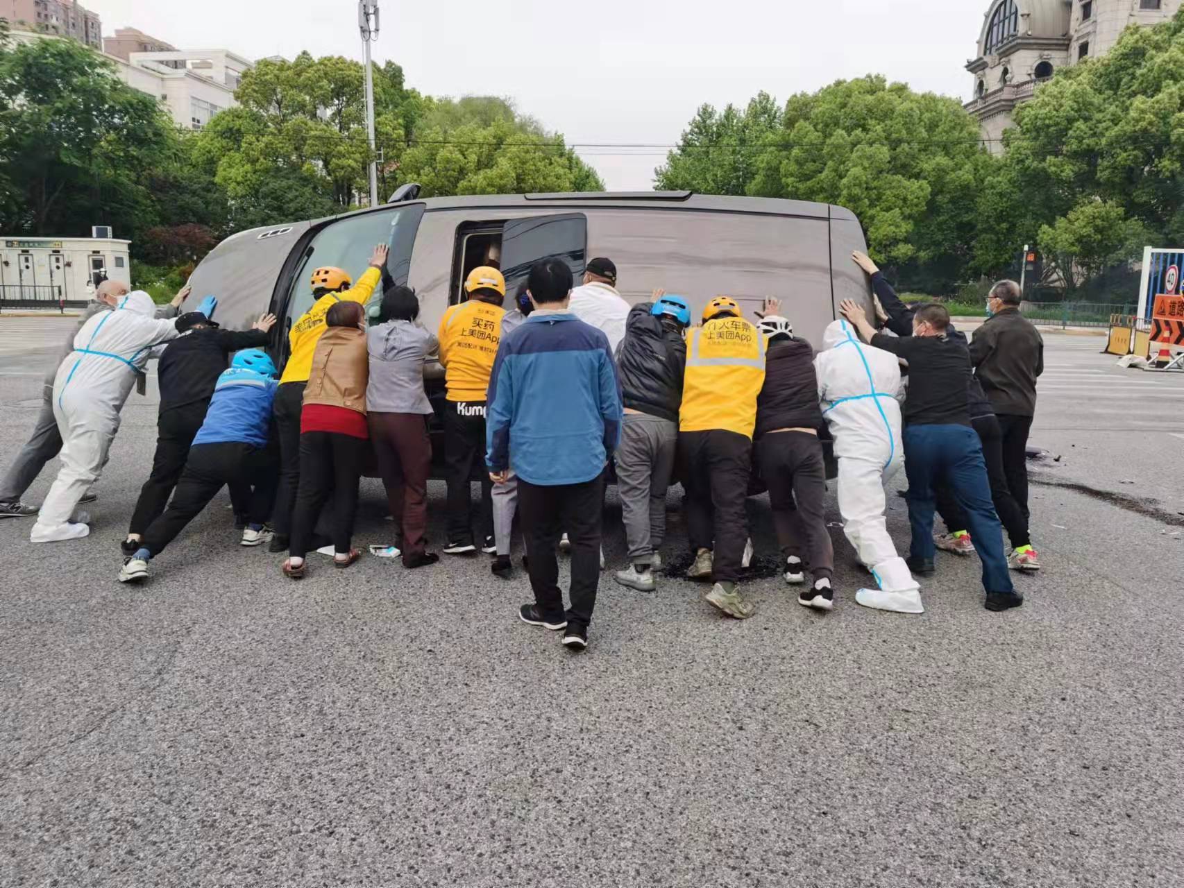很快,幾位外賣小哥、過路行人聚集到車輛旁邊,大家喊著口號,齊心合力將側翻的SUV轎車翻正,受困的駕駛員被順利救了出來,所幸其身體沒有大礙。SUV轎車的駕駛員再三向宗保隊員等人表示感謝。