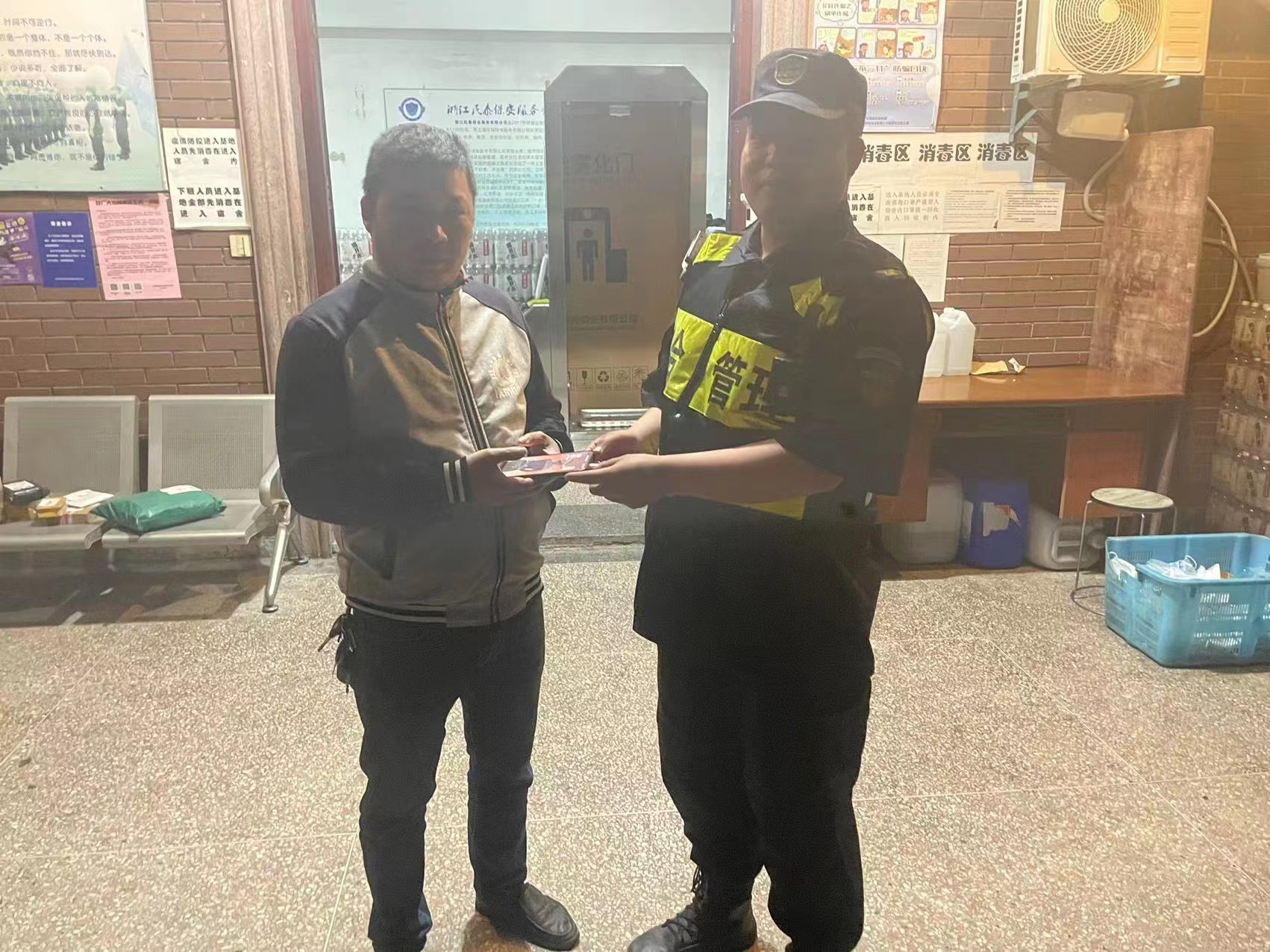 約過了半小時,一名男子騎著電瓶車趕到約定地點。雷川黔核實確認男子的失主身份后,將手機歸還給了他,男子再三向隊員雷川黔表示感謝。