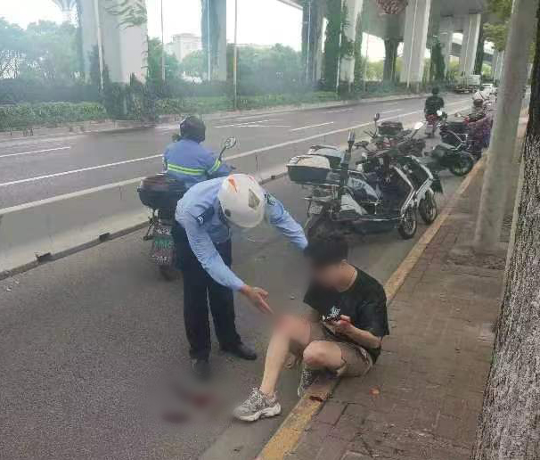 當(dāng)日9:00,公司員工王團結(jié)和吳雷巡邏到北翟路申虹路向東約700米處時,看見非機動車道上發(fā)生一起交通事故,便立即上前察看。