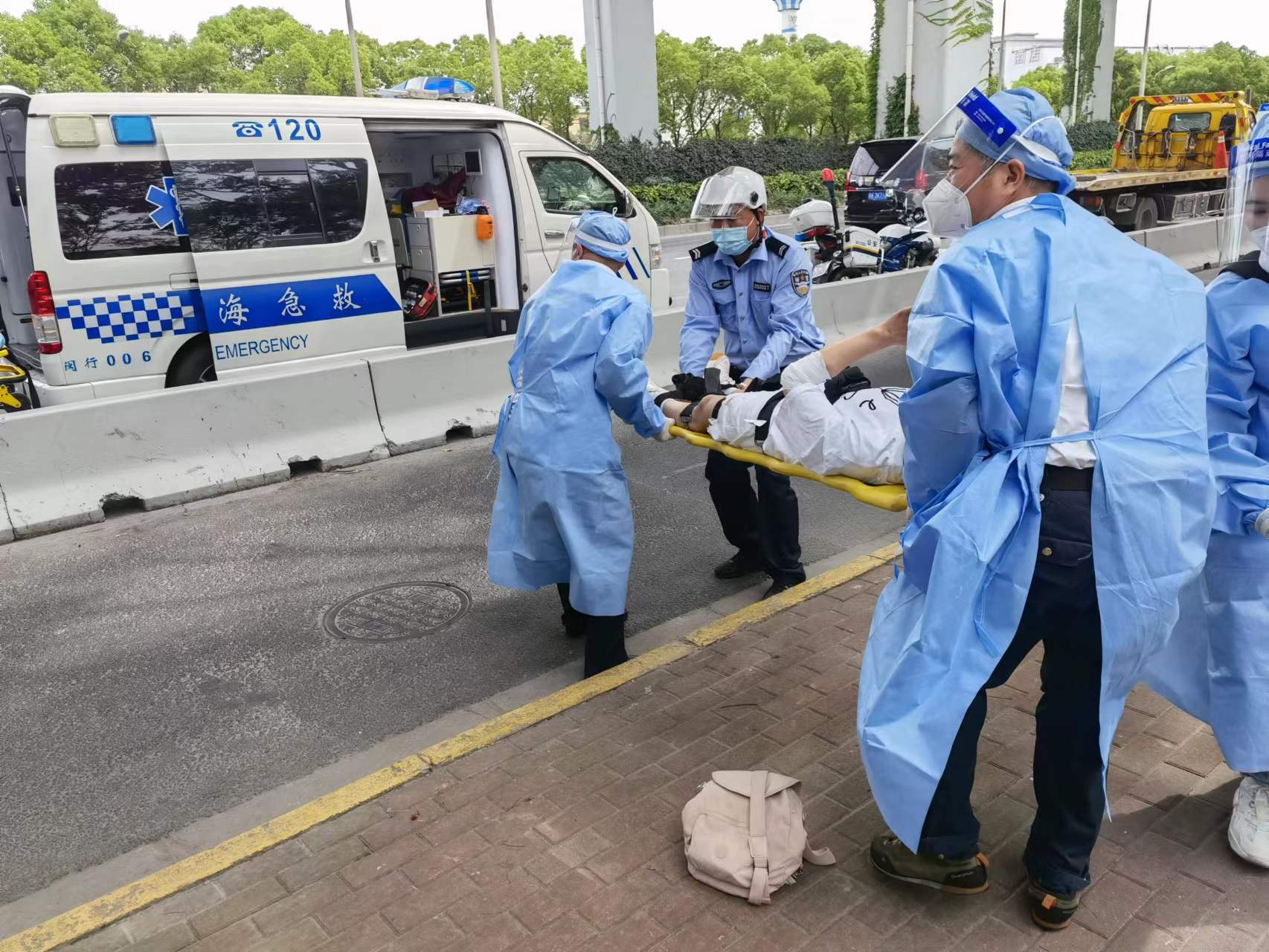 6月28日,宗保公司駐閔行輔警華漕護校項目員工幫助車禍傷者。