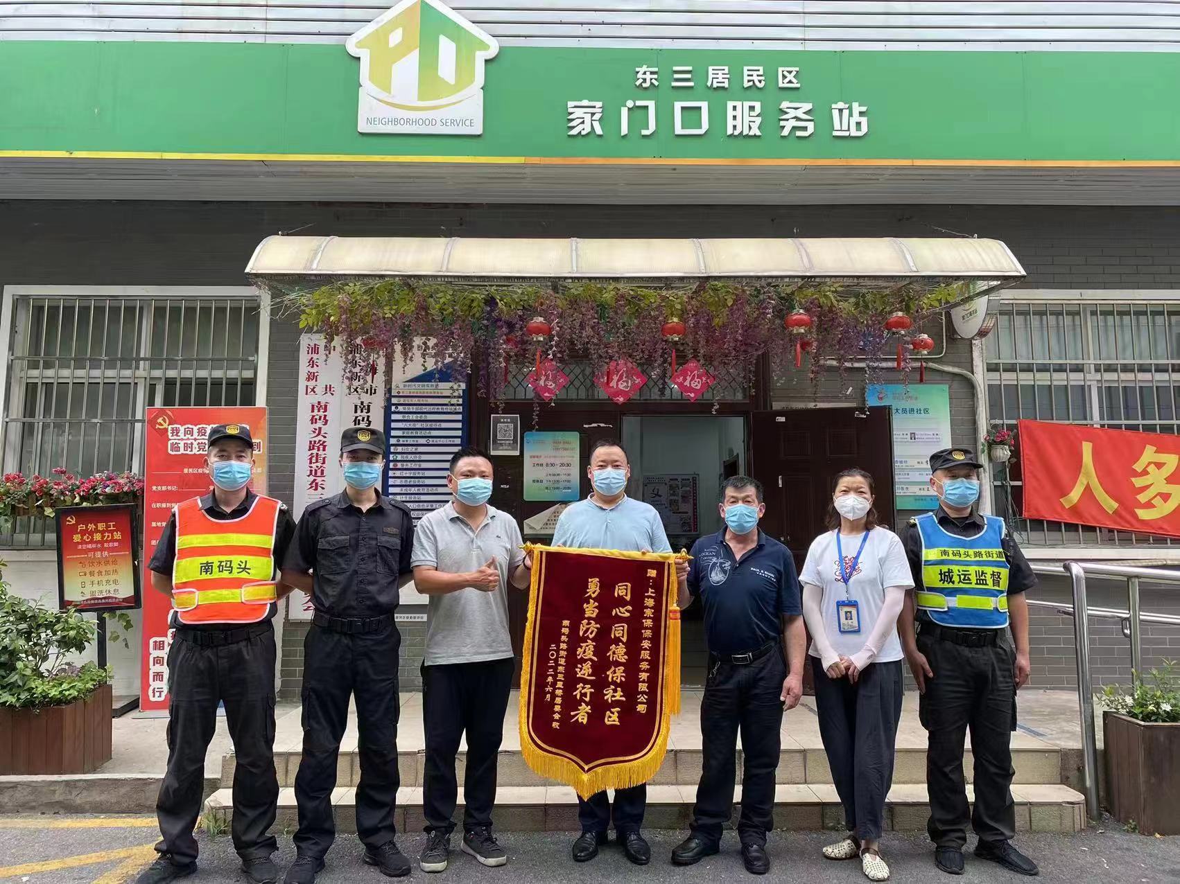 6月13日,南碼頭路街道東三里橋居委將一面繡有“同心同德保社區(qū) 勇當(dāng)防疫逆行者”的錦旗和一封感謝信送到宗保公司駐東三居民區(qū)項目,衷心感謝公司員工在疫情防控工作中的不懈努力和辛勤付出。