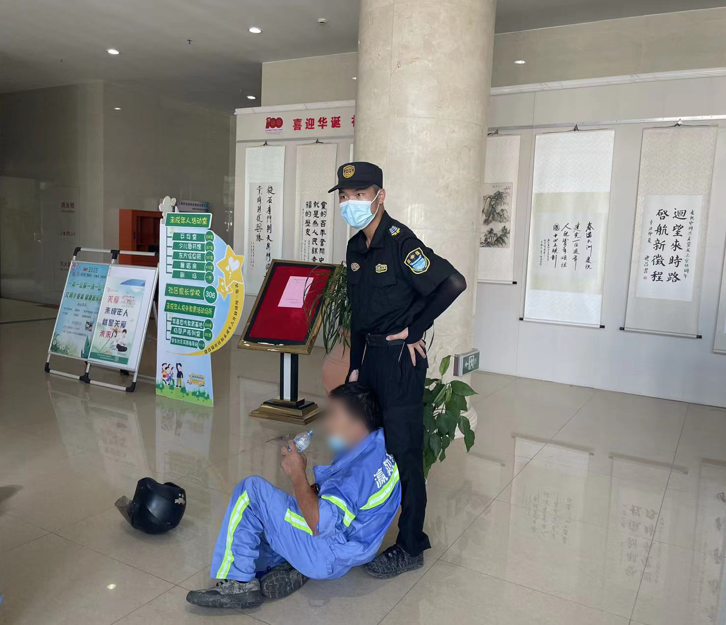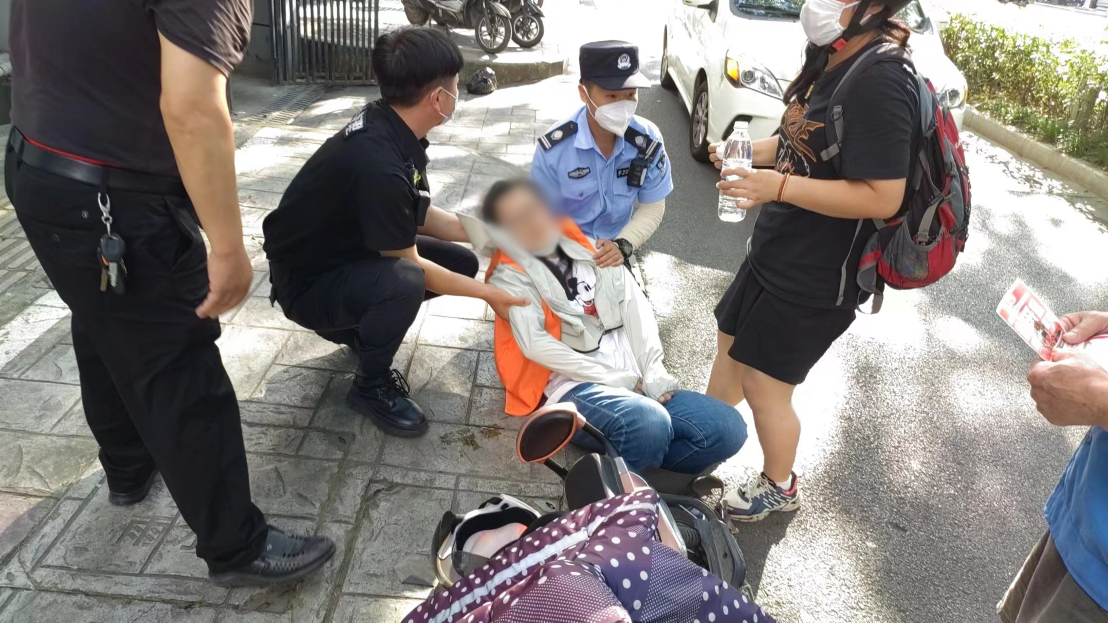 7月12日8:30,公司駐崇明區(qū)建設(shè)鎮(zhèn)項(xiàng)目員工韓永坤在建設(shè)鎮(zhèn)文化活動(dòng)中心核酸采樣點(diǎn)保障時(shí),發(fā)現(xiàn)一位身穿藍(lán)色環(huán)衛(wèi)衣的老人癱坐在地,臉色蒼白,衣服濕透,疑似中暑。韓永坤攙扶老人,遞服仁丹和礦泉水,并聯(lián)系其家人送往醫(yī)院治療。