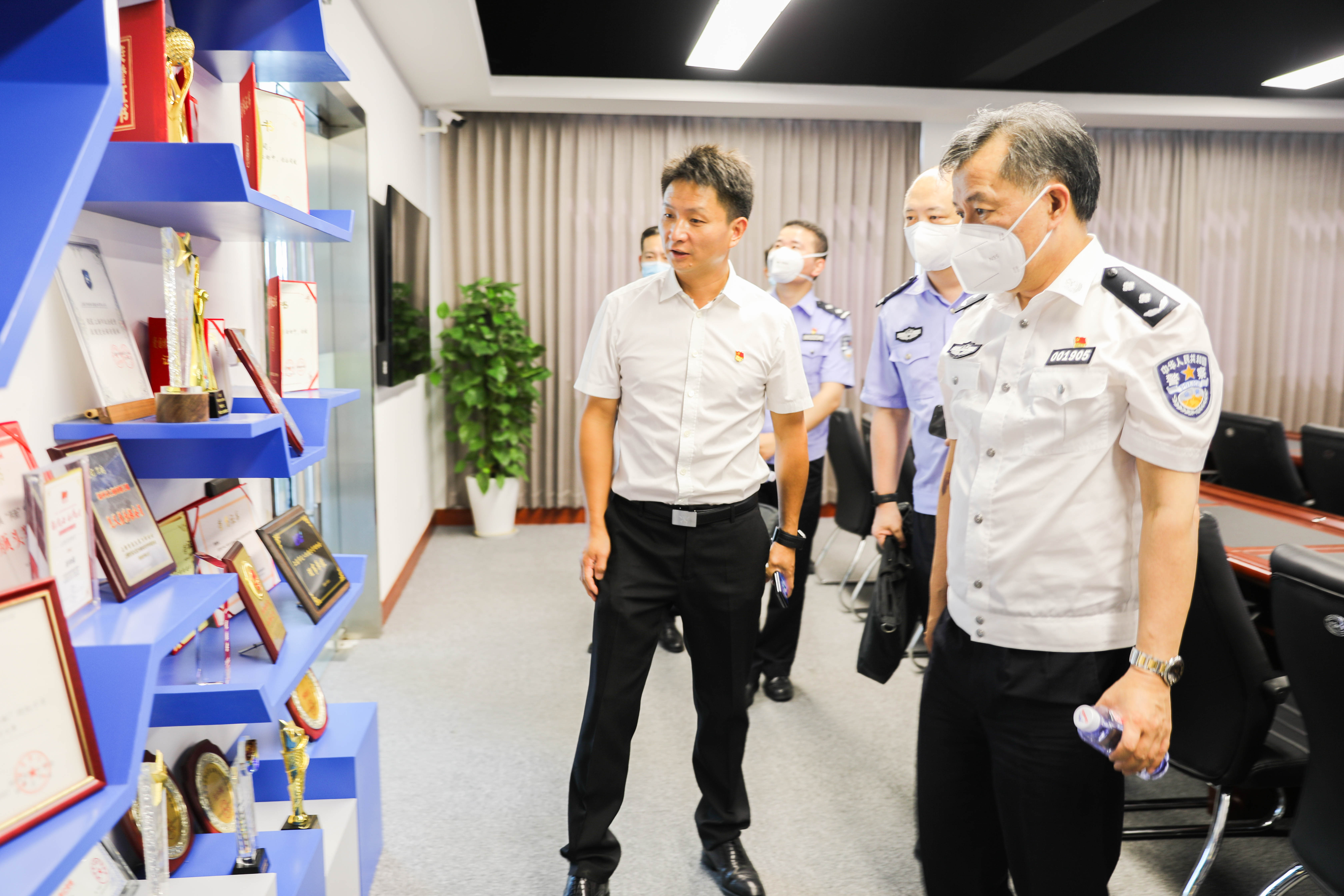8月5日上午,上海市公安局治安總隊副總隊長陳計明率保安管理處相關同志到宗保保安服務有限公司走訪調(diào)研。公司創(chuàng)始人馮中保、董事長王耀和總經(jīng)理蔣德玉陪同。