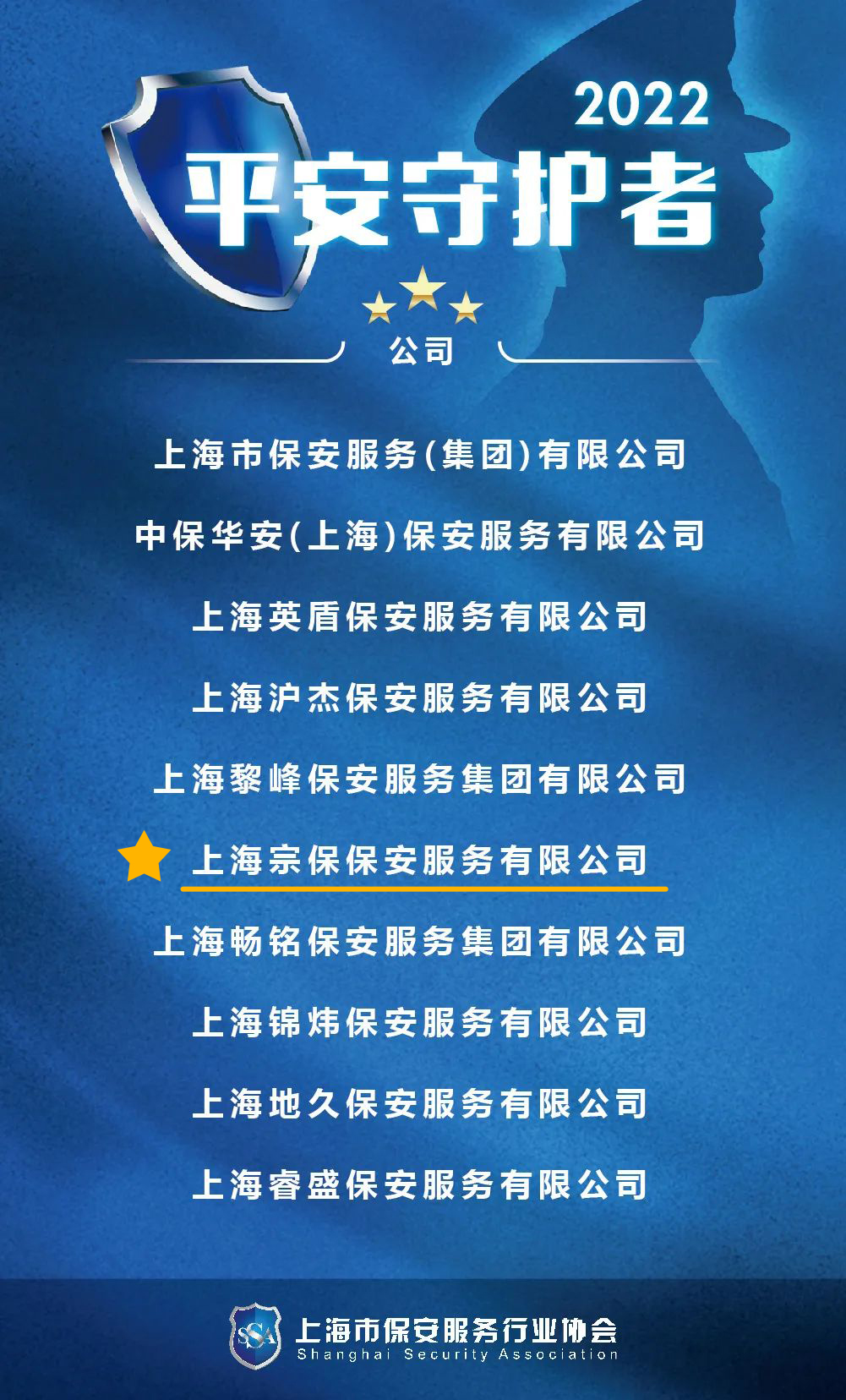 上海宗保保安服務(wù)有限公司被評為“平安守護(hù)者”
