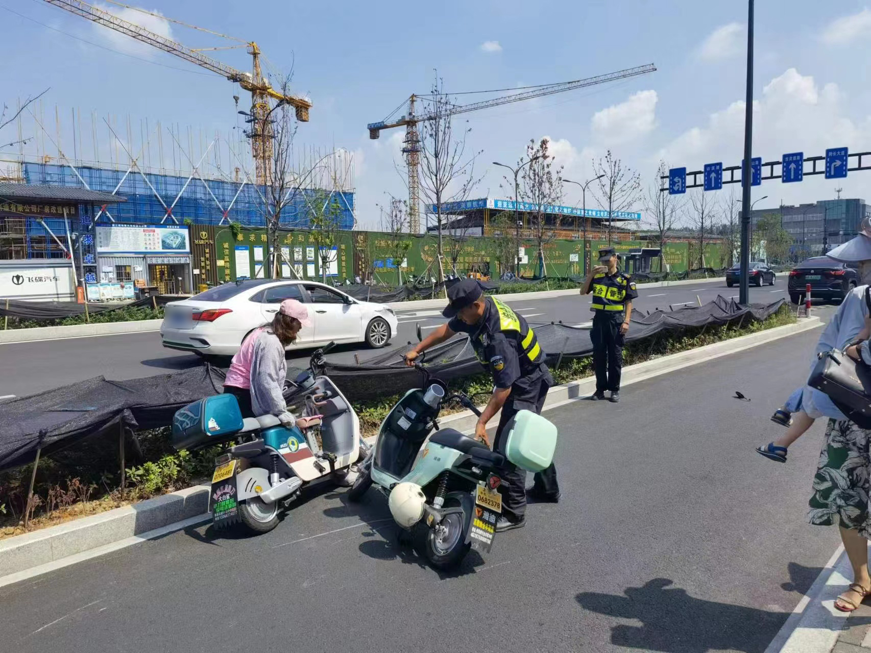 當(dāng)天10:45,郭可飛、董懷義和魏文鵬在五常大道樂天城附近巡查時,遇到一起交通事故,一輛載著小孩的電瓶車與一輛女子騎的電瓶車相撞,雙方相互指責(zé)爭論不休。
