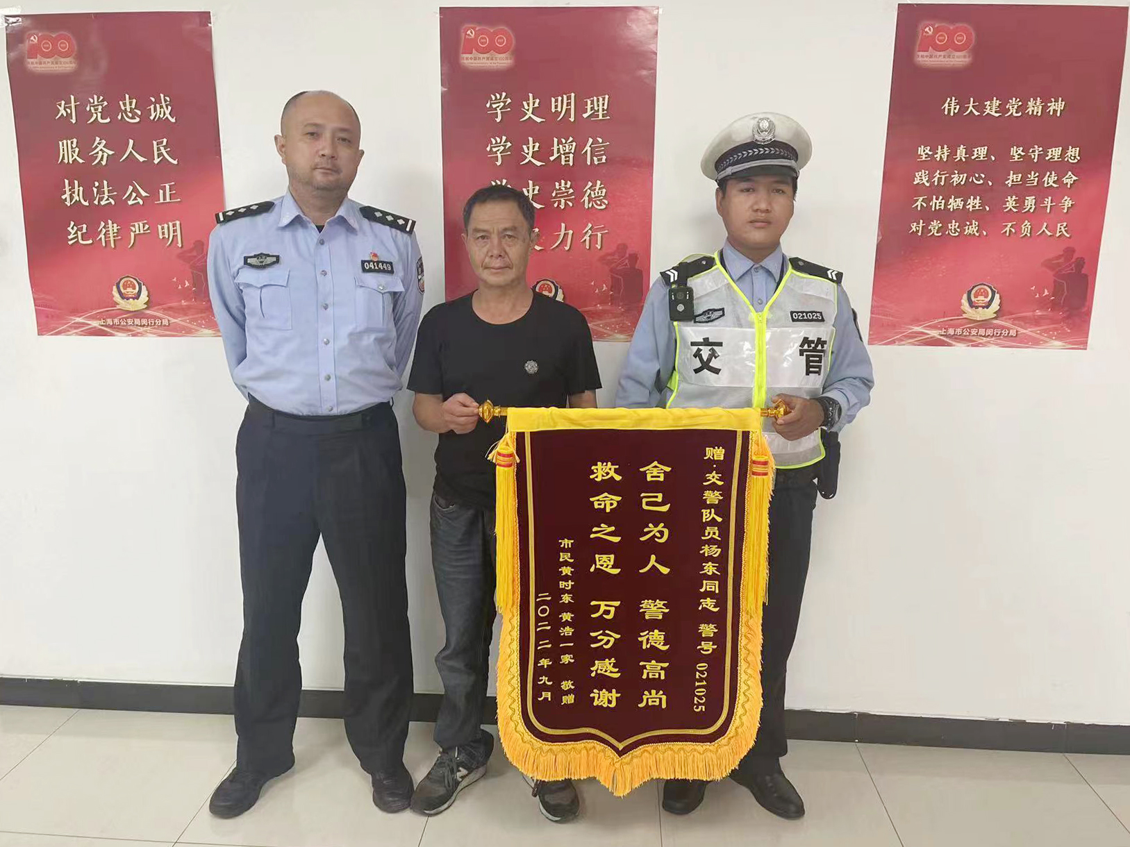 9月21日,宗保公司駐閔行交管輔助項目收到市民黃先生送來的一面繡有“舍已為人 警德高尚 救命之恩 萬分感謝”的錦旗,感謝宗保員工楊東熱心救自己落水母親的行為。