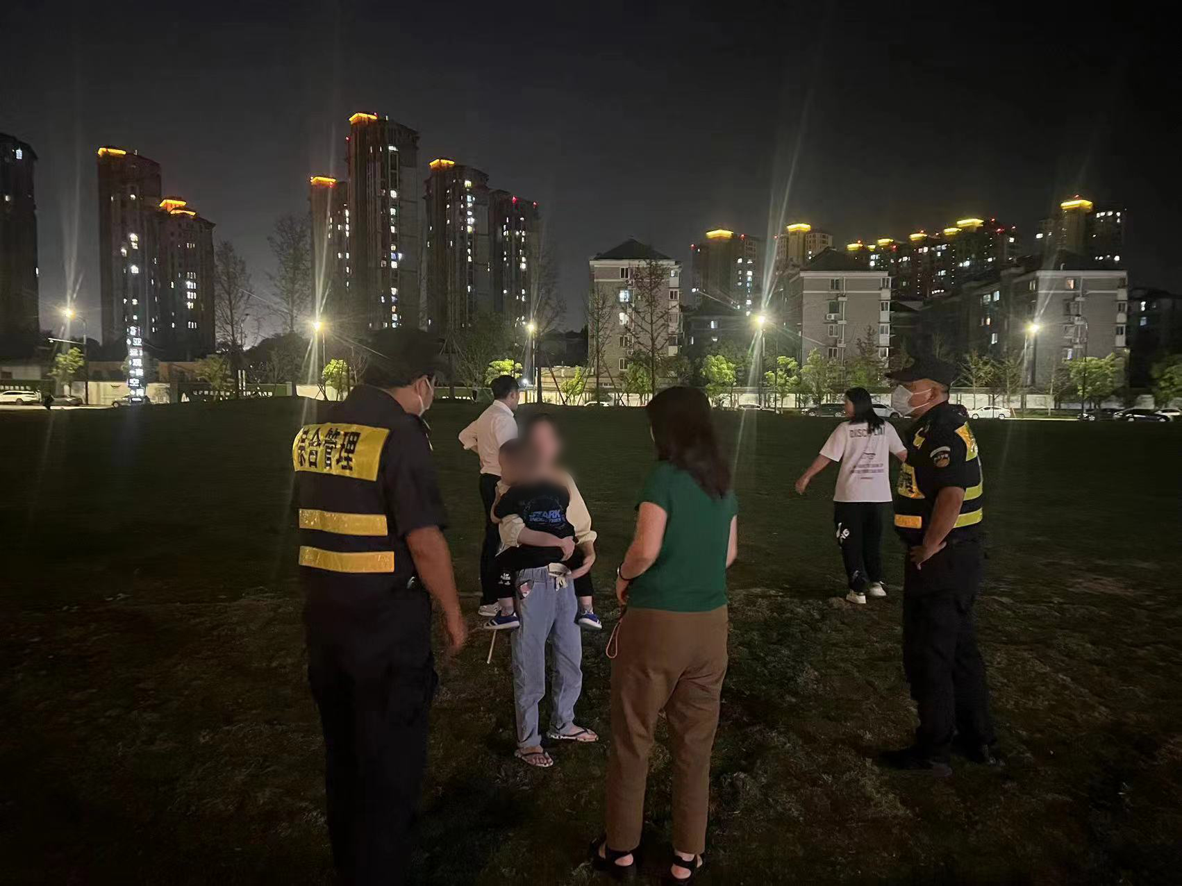當(dāng)天21:10,馮奧、朱富豪和盧鵬在閑林老街大草坪附近巡查時,發(fā)現(xiàn)一小男孩在路邊來回徘徊,身邊沒有大人陪伴。