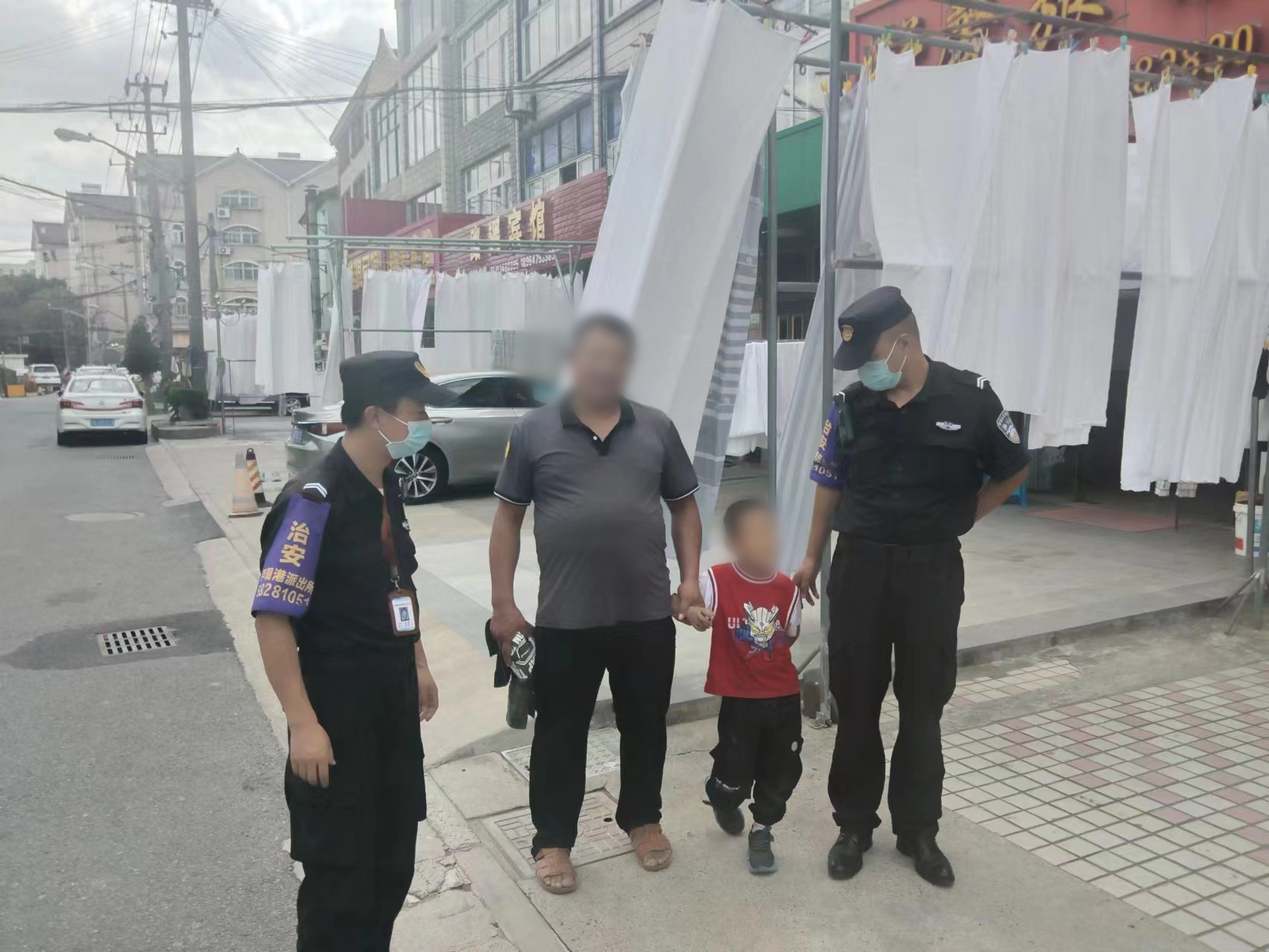 9月25日,宗保公司駐蘆潮港派出所輔助項目員工幫助家長找到走散小男孩。