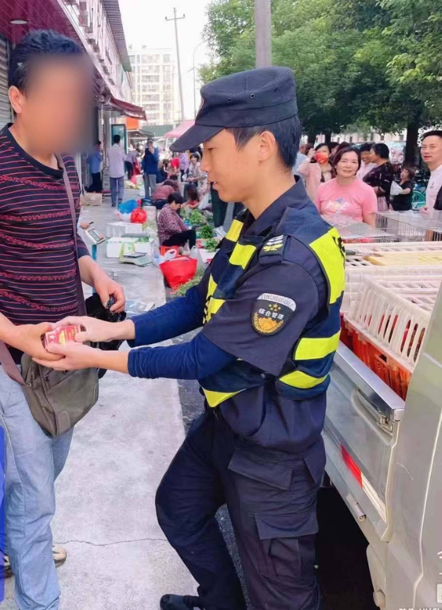 當(dāng)日7:20,雍正維和陳浩東在五常街道同順街與繁惠路交叉口永福菜場值勤時,一流動攤販要將四包香煙塞到兩名隊員手中,試圖以此讓兩人照顧其攤位。
