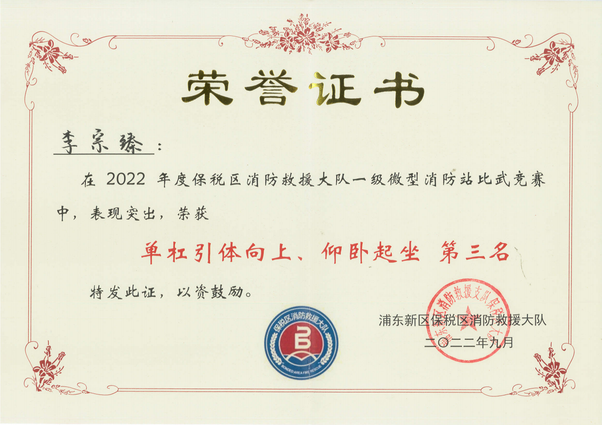 9月28日,宗保公司員工參加2022年度浦東新區(qū)保稅區(qū)消防救援大隊一級微型消防站比武競賽,經(jīng)過激烈角逐,公司參賽員工不畏強手、力爭上游,最終在多項比賽活動中榮獲佳績,展現(xiàn)了公司員工過硬的業(yè)務(wù)技能,彰顯了公司員工進取的精神風(fēng)采。