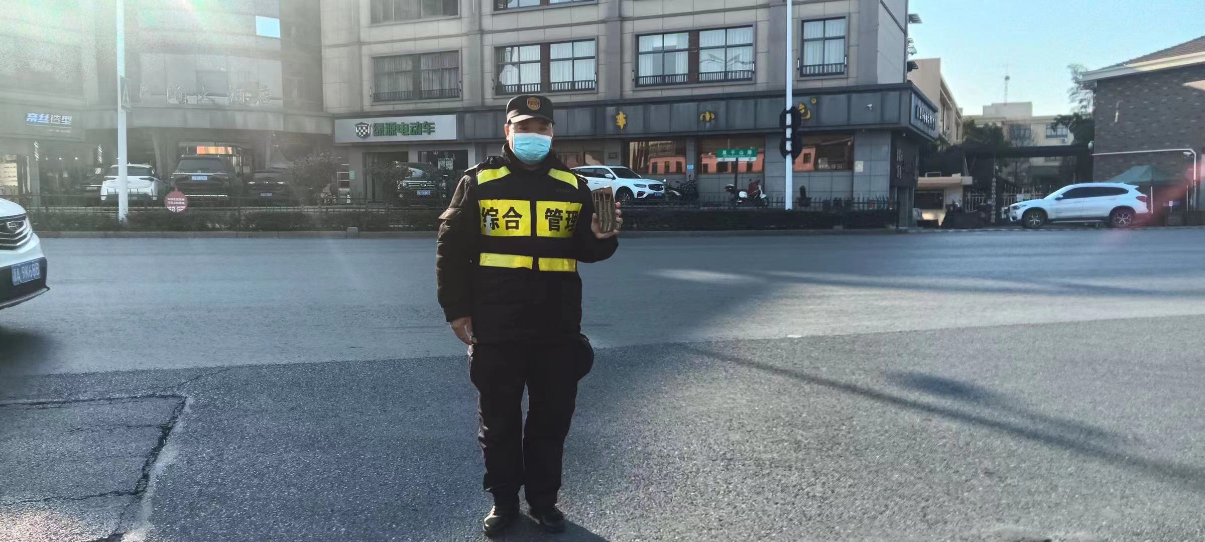 當(dāng)日14:30,公司員工王向華在良渚街道莫干山路玉棕路交叉口值勤時(shí),撿到一部vivo手機(jī)。因手機(jī)設(shè)置有鎖屏密碼,無(wú)法第一時(shí)間聯(lián)系到失主,王向華便將現(xiàn)場(chǎng)情況上報(bào)了項(xiàng)目負(fù)責(zé)人,并按指示在原地等待。
