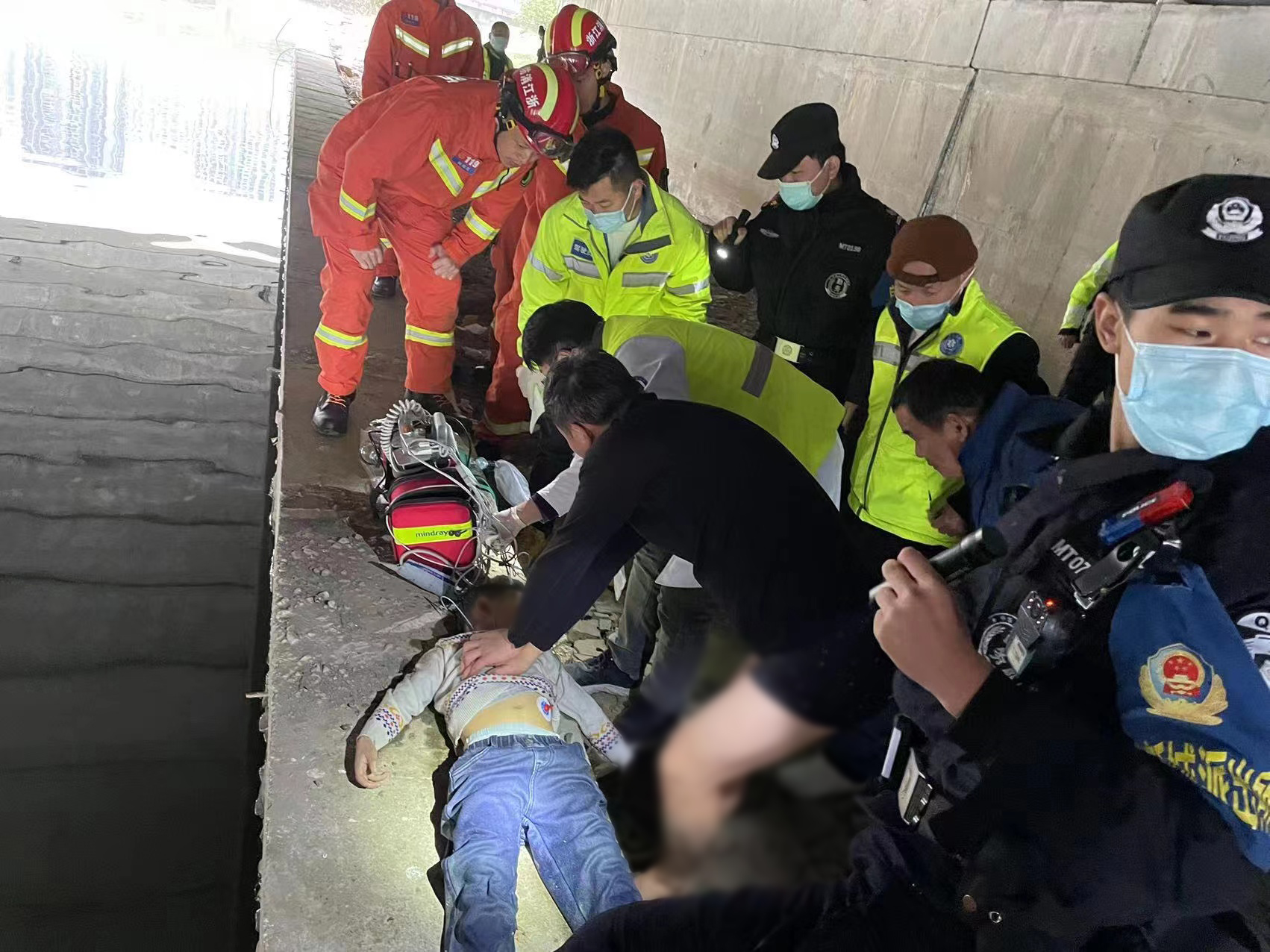 1月23日10:40,公司員工馬凱凱巡邏時(shí)接到指令,稱良渚實(shí)驗(yàn)學(xué)校旁莊墩路橋下有人落水,便立即趕回派出所跟隨輔警李梟琦和周東明前往事發(fā)現(xiàn)場(chǎng)進(jìn)行救援。