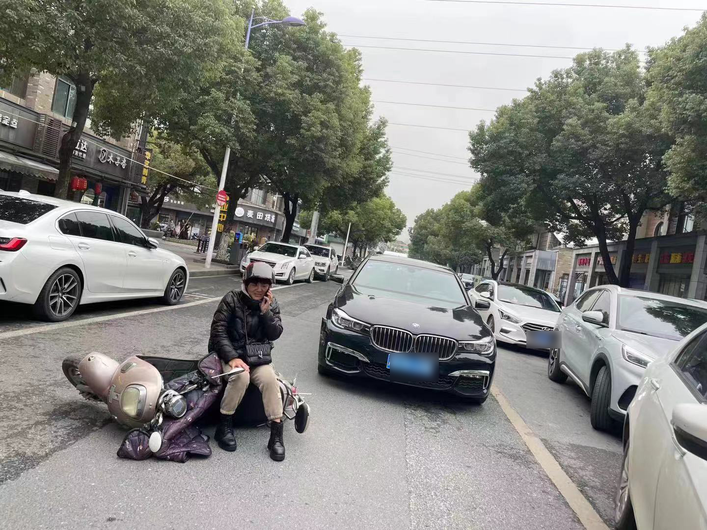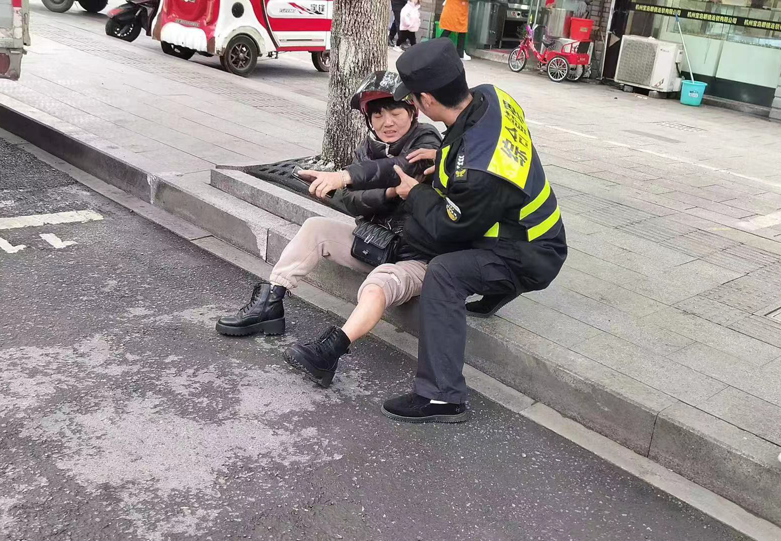 當天15:50,公司員工李佺在良渚農貿市場附近巡邏時,看到一騎電動車過馬路的女子被一輛小轎車撞倒在地,便趕緊跑上前察看。