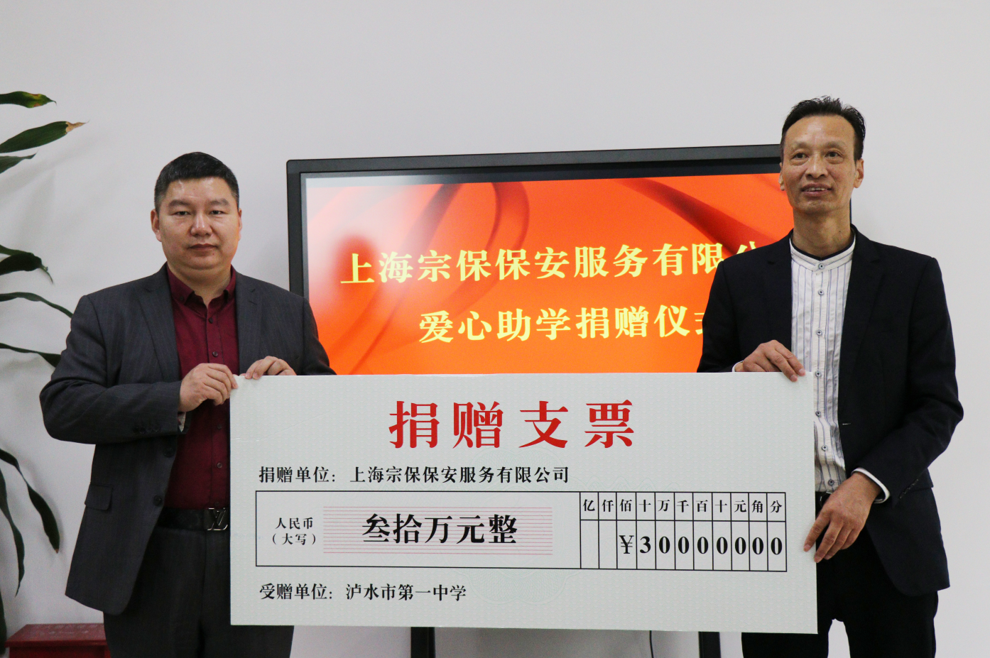 2月21日上午10時,上海宗保保安服務(wù)有限公司愛心助學(xué)捐贈儀式在云南省怒江州瀘水市第一中學(xué)舉行。怒江州州委常委、副州長黃克鵬出席,瀘水市副市長高艷飛主持捐贈儀式。 公司副總經(jīng)理楊璞一行專程來到瀘水市第一中學(xué)參觀學(xué)校教學(xué)建設(shè),參加“上海宗保保安服務(wù)有限公司愛心助學(xué)捐贈儀式”,代表公司向瀘水市第一中學(xué)捐助資金30萬元,用于幫助貧困家庭學(xué)子圓夢學(xué)業(yè)。