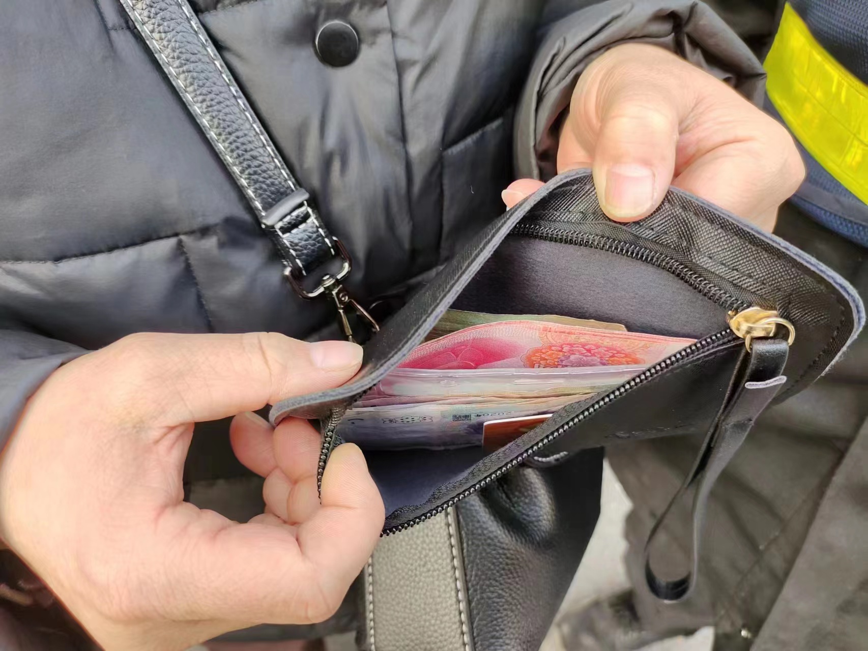 兩人等了30多分鐘,仍未見人來認領(lǐng),便將錢包上交了城管中隊。8:50左右,一位身穿黑衣聽聞信息的女子趕到城管中隊認領(lǐng)錢包。