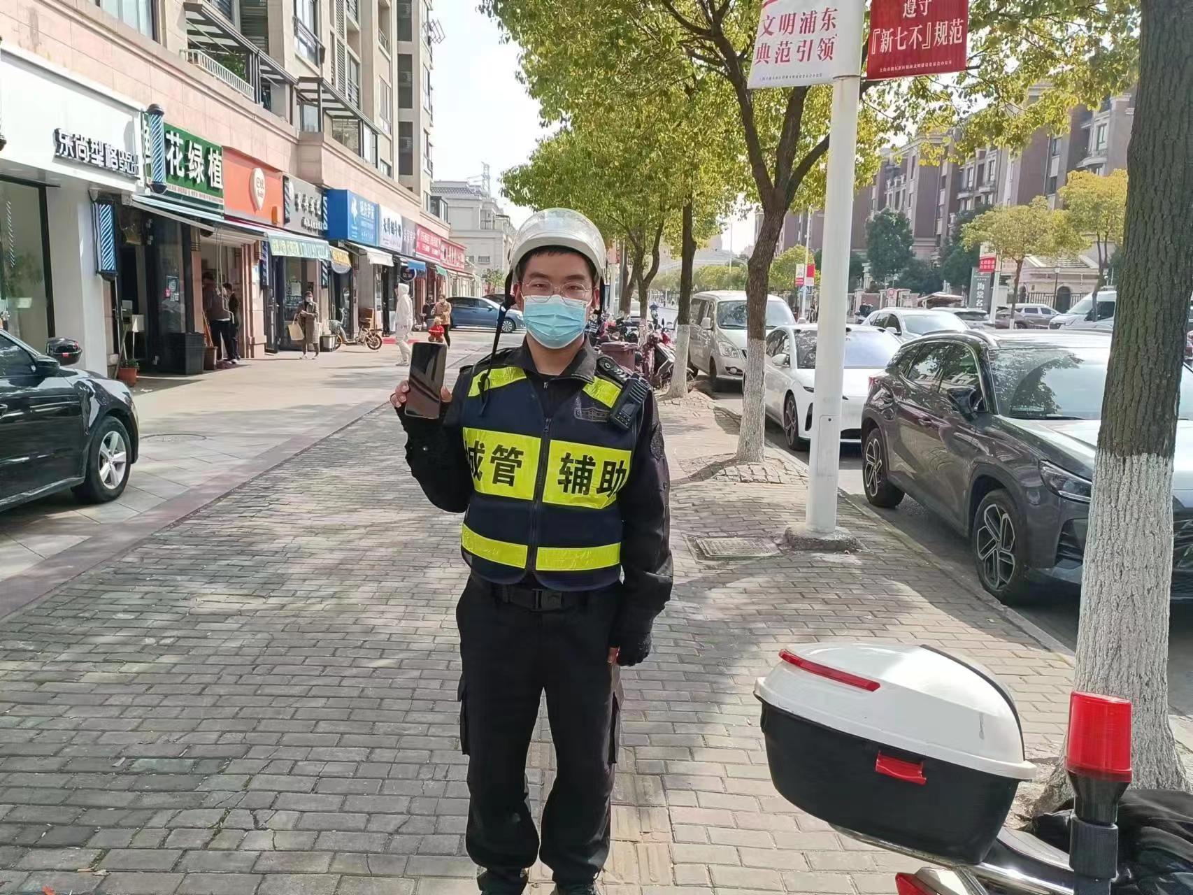 當天9:40,公司員工王軍營在沈梅東路海棠名苑門口整理亂停放共享單車時,撿到一部華為手機。王軍營詢問了周圍人,沒能找到失主,便將手機上交到周浦城管中隊。