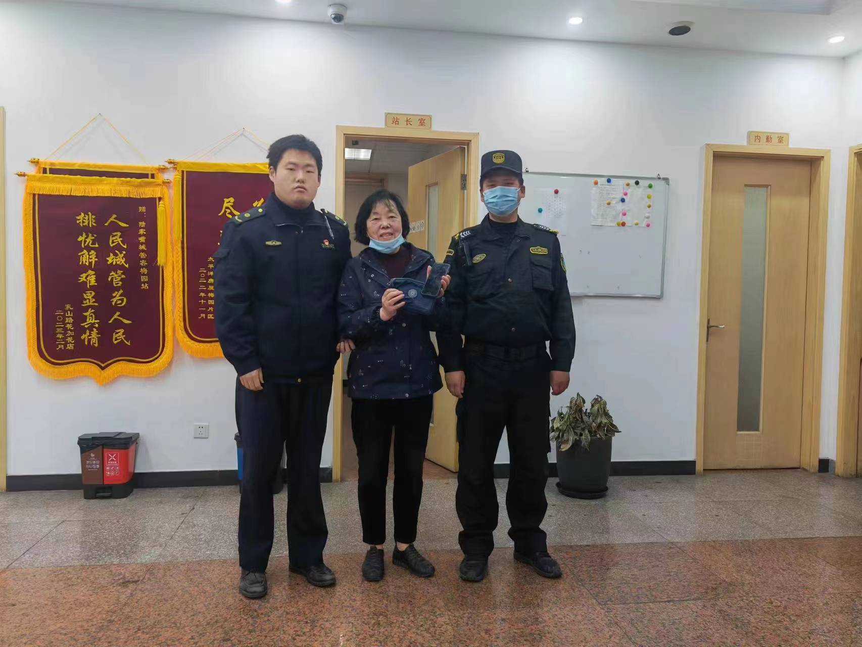 等了20多分鐘,仍不見失主前來尋找。郁海燕便將情況報告了城管工作站領導。又過了幾分鐘,一位自稱是失主的女士打來電話,郁海燕告訴她手提包已被妥善保管,請稍后到城管工作站領取。