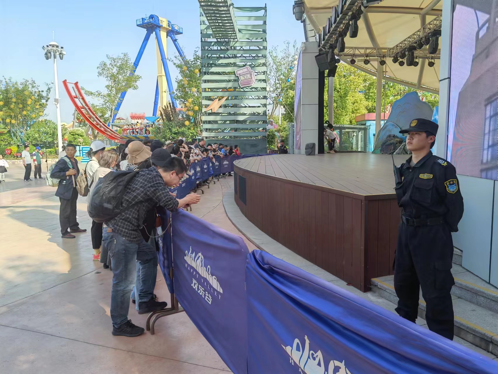 “五一”小長假期間,南京歡樂谷游客如織。為保障景區(qū)安全有序運行,宗保公司按照歡樂谷的部署要求,精心組織,周密安排,預判游客人流,制定應急預案,全力協(xié)助甲方做好各項安保秩序維護工作。