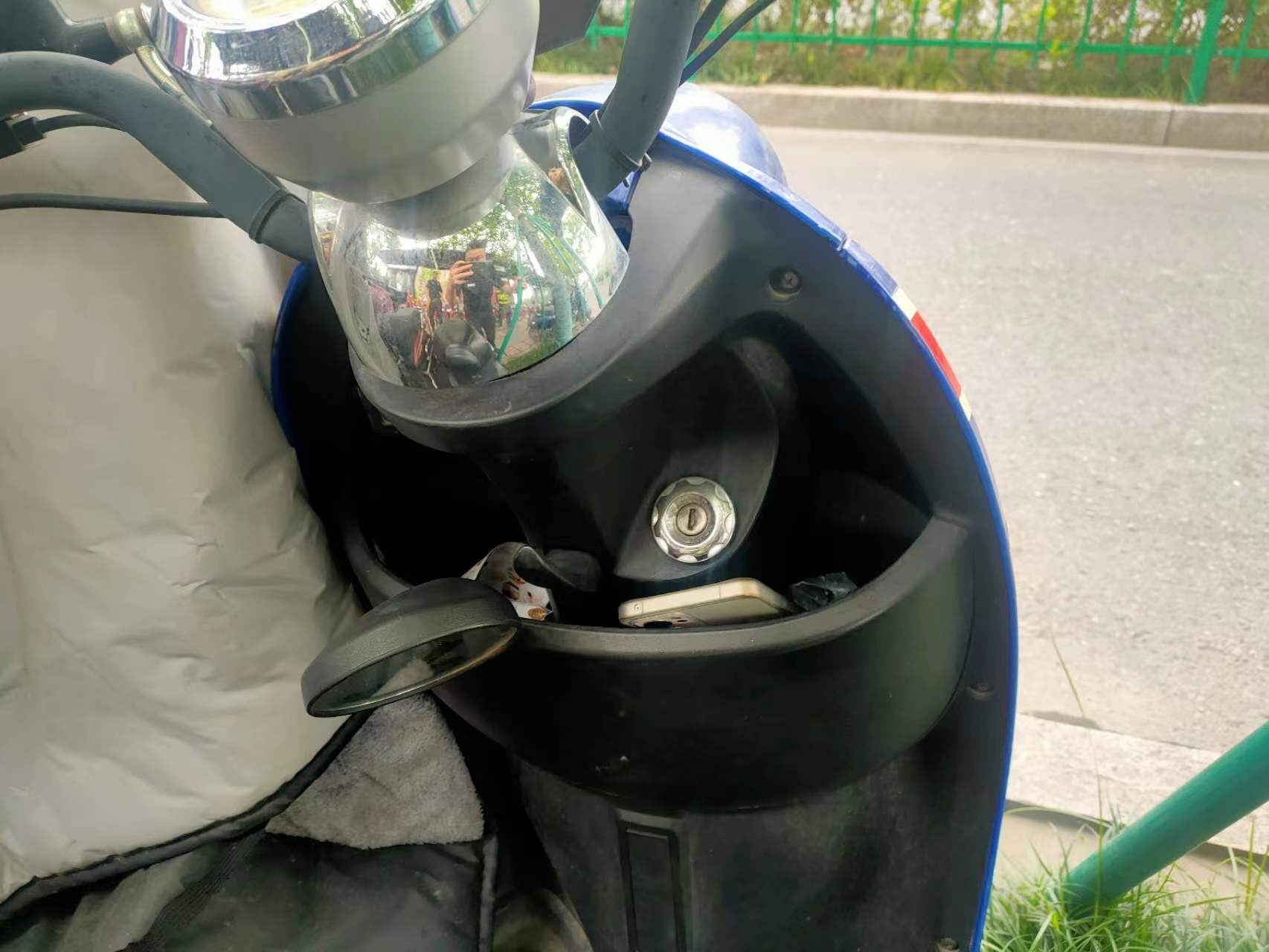 當(dāng)天9:33,公司員工彭帥超在白洋路地鐵站D口進(jìn)行違停電瓶車序化管理時,發(fā)現(xiàn)有一部白色OPPO Reno9手機遺落在一輛電瓶車的前放置架里。