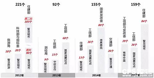 2012年12月5日,住建部印發(fā)了《國(guó)家智慧城市試點(diǎn)暫行管理辦法》和《國(guó)家智慧城市(區(qū)、鎮(zhèn))試點(diǎn)指標(biāo)體系(試行)》兩個(gè)文件,之后分三批批準(zhǔn)共計(jì)約300個(gè)城市(區(qū)、鎮(zhèn))開(kāi)展了國(guó)家智慧城市試點(diǎn)。據(jù)不完全統(tǒng)計(jì),從2012年到2015年年底,各部委組織的智慧城市相關(guān)試點(diǎn)有近600個(gè)。