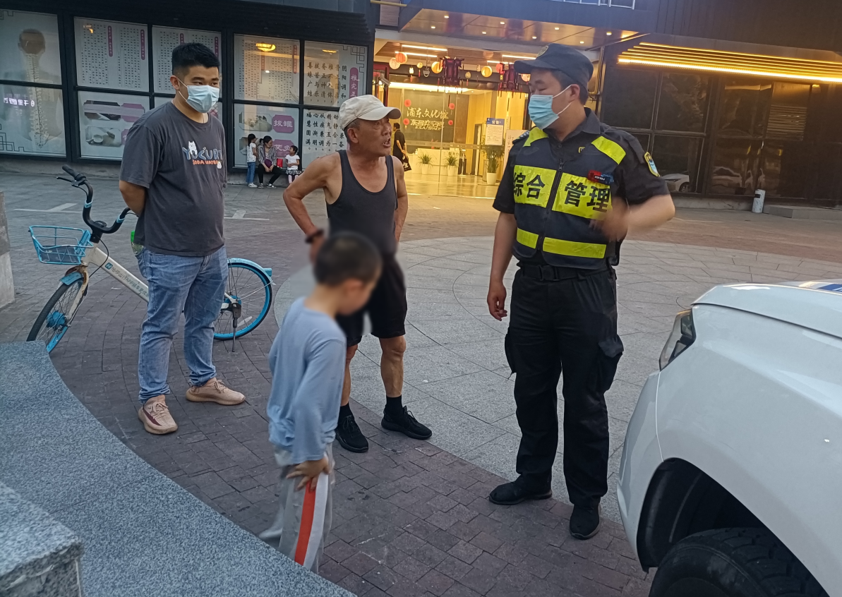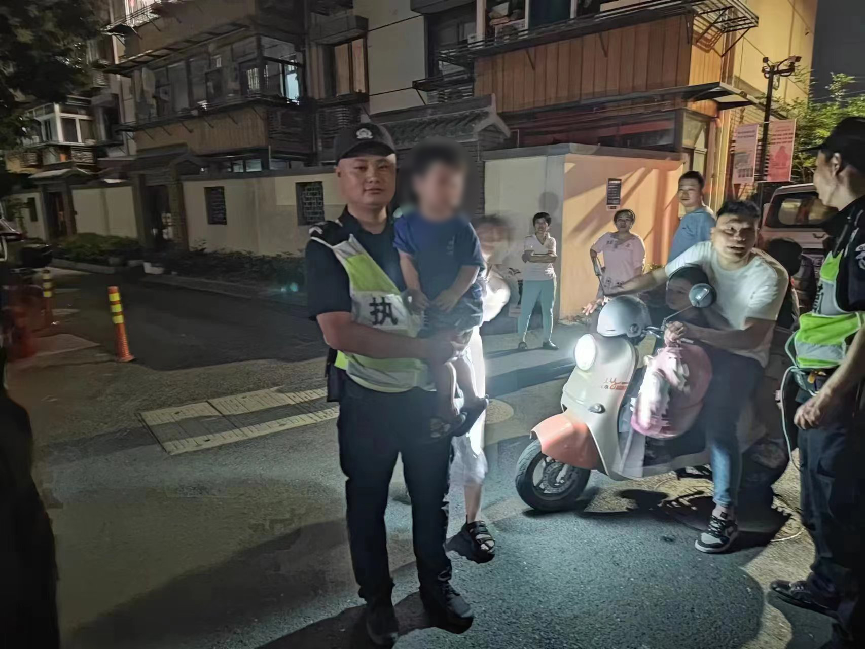 當(dāng)天20:30,公司員工徐玉強(qiáng)和牛坤在良渚街道玉鳥集巡邏時,遇到一家長求助,稱自己和孩子在玉鳥集散步,因人多一時沒照看好,孩子和自己走散了。