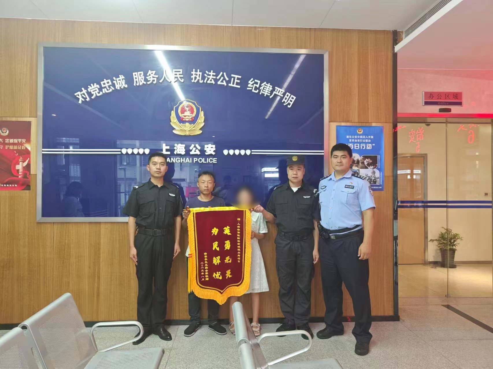 8月5日,宗保公司駐浦東新區(qū)臨港新城派出所輔助項目收到市民李先生送來的繡有“英勇無畏 為民解憂”的錦旗,感謝宗保員工李漢濤8月3日晚不顧海灘路況復(fù)雜,不嫌麻煩可能區(qū)域細(xì)細(xì)查尋,歷經(jīng)3個多小時,配合幫助報警市民李先生找到走散女兒的熱心行為。