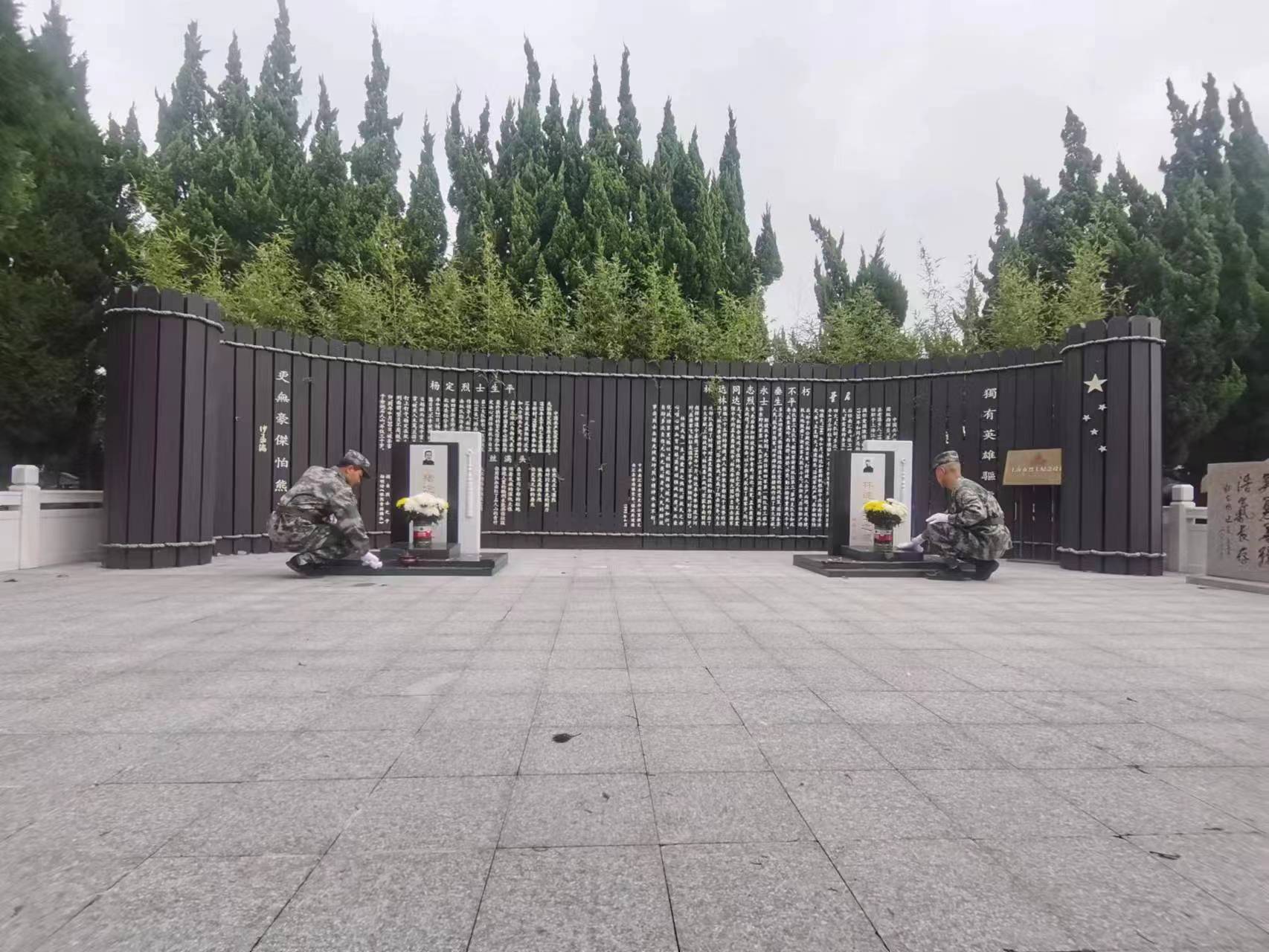 接著,浦東區(qū)隊(duì)志愿者來(lái)到每位革命烈士墓碑前,擦拭烈士墓碑,整理旁邊便道,清掃草葉雜物,以實(shí)際行動(dòng)緬懷革命先烈。