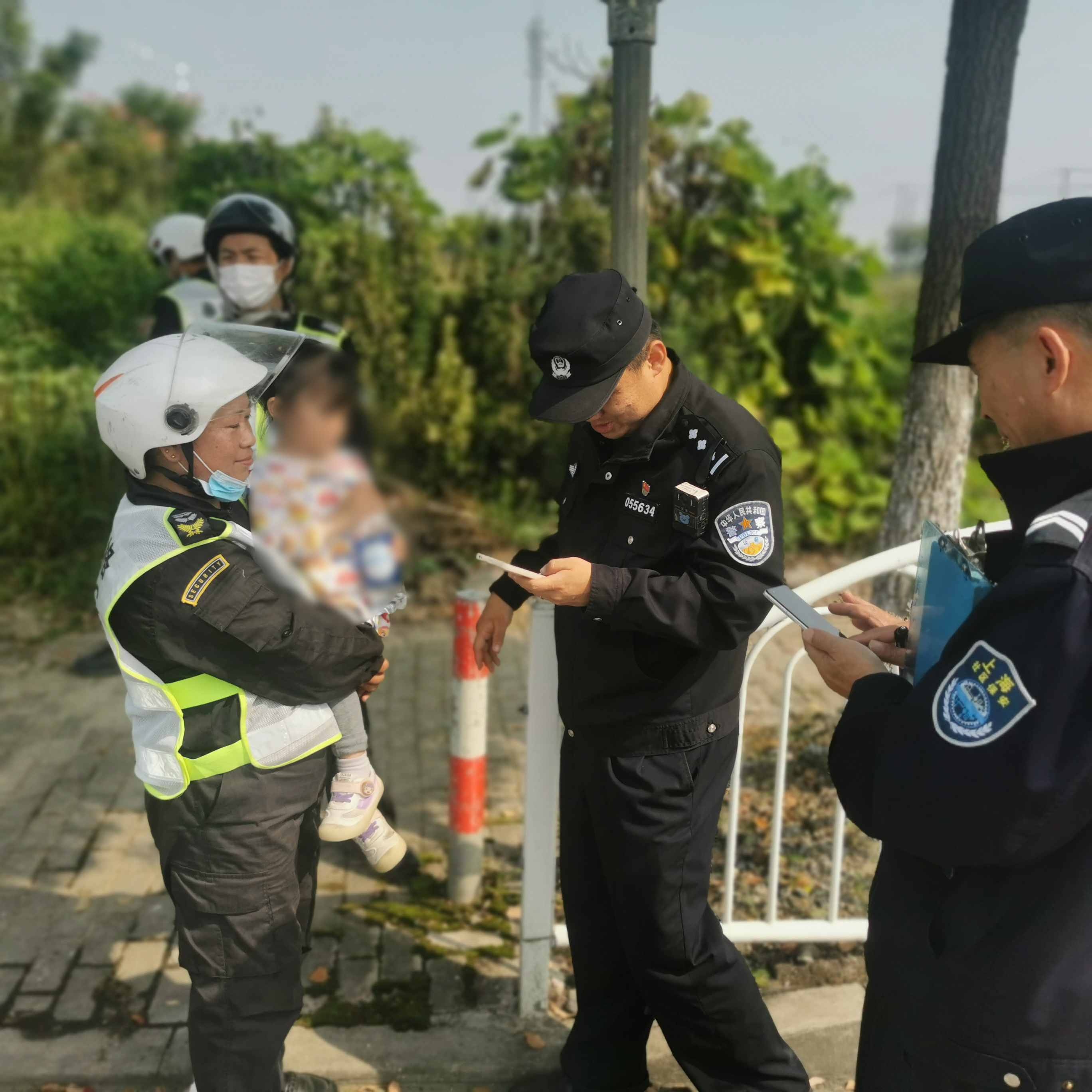 3人了解情況后,蘇周撥打了110報(bào)警電話。很快,派出所民警趕到現(xiàn)場(chǎng),3人按照民警的指示立即分頭行動(dòng)。龍鳳嬌抱著小女孩坐上警車,隨民警沿街尋找,蘇周和朱洋洋則騎著巡邏車沿華庭村挨家挨戶詢問(wèn)。