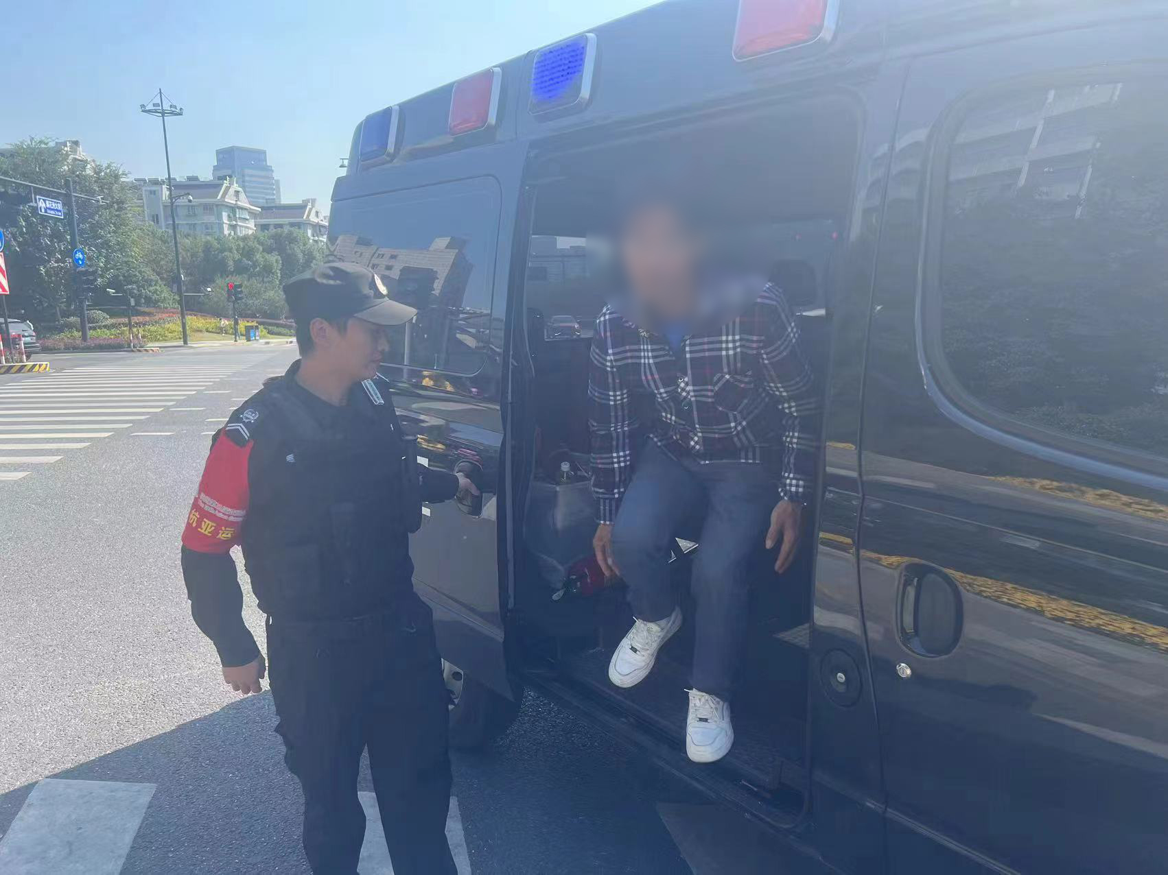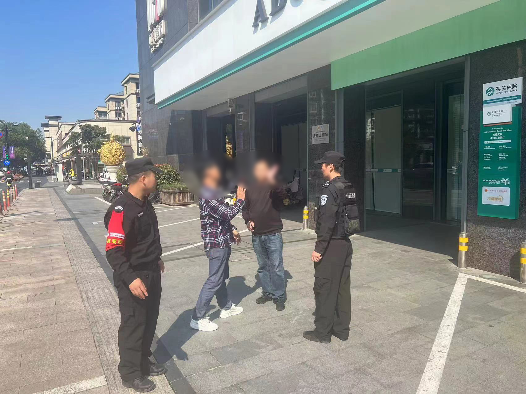 當(dāng)天11:50,公司員工安營(yíng)鋒、袁良超和陳新駕駛巡邏車在臨平南站文正街和新豐路交叉口巡邏時(shí),發(fā)現(xiàn)兩名男子在路邊徘徊,不說(shuō)話手又不停地比劃著,似乎很焦急。