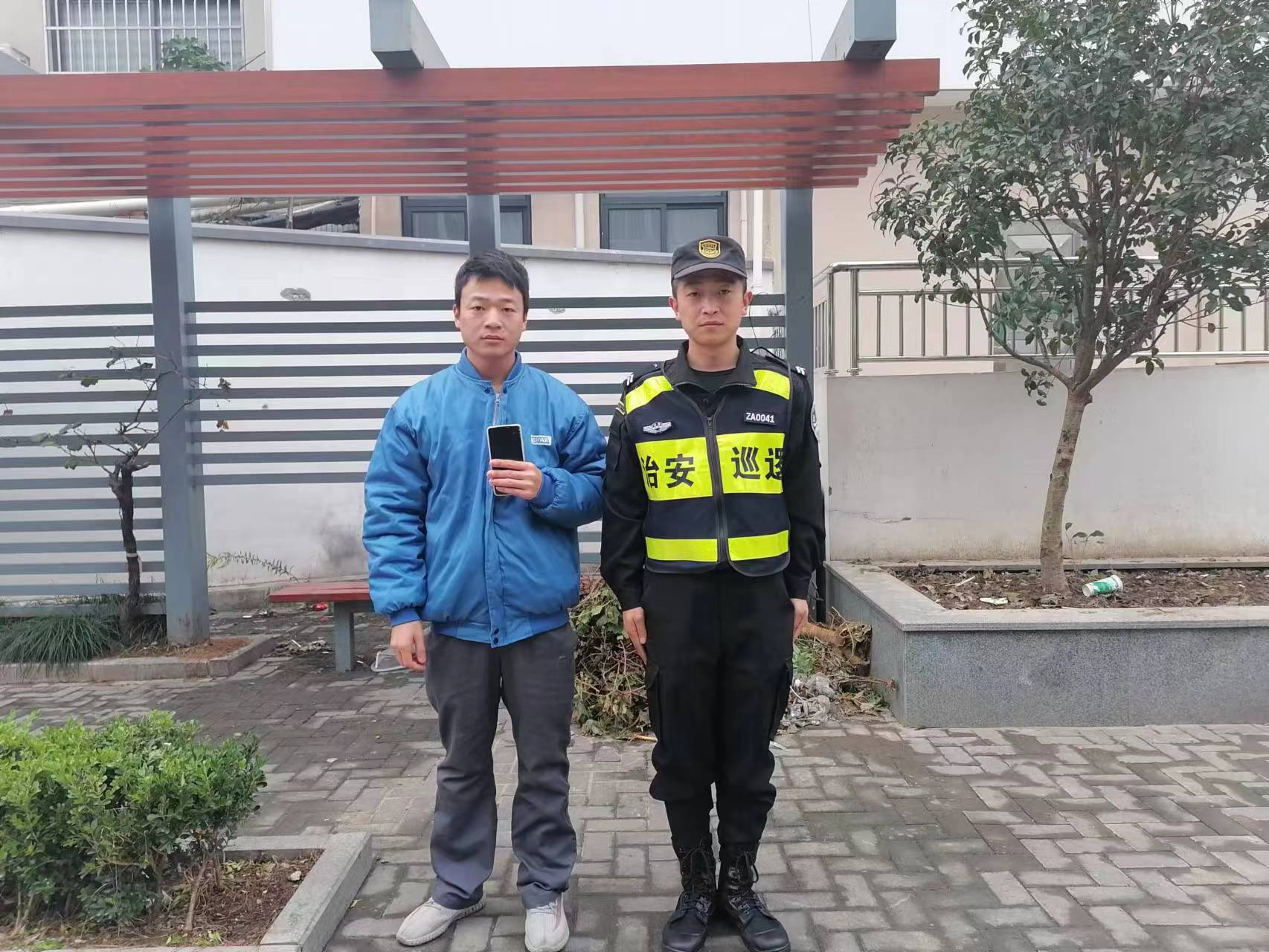 11月14日12:15,宗保公司駐奉賢區(qū)柘林網(wǎng)格項目員工周俊在柘林鎮(zhèn)新林公路與南宅路交叉口巡邏時,撿到一部OPPO手機,報告班組長后便在原地等待。大約過了20分鐘,一男子打來電話尋找手機,周俊簡單問了問情況,隨后與他約好碰面地點。很快,一位騎著電瓶車的男子趕到現(xiàn)場。通過成功解鎖手機鎖屏密碼,確認男子是失主后,周俊就將手機交還給他。男子十分感謝,并為其拾金不昧的行為點贊。
