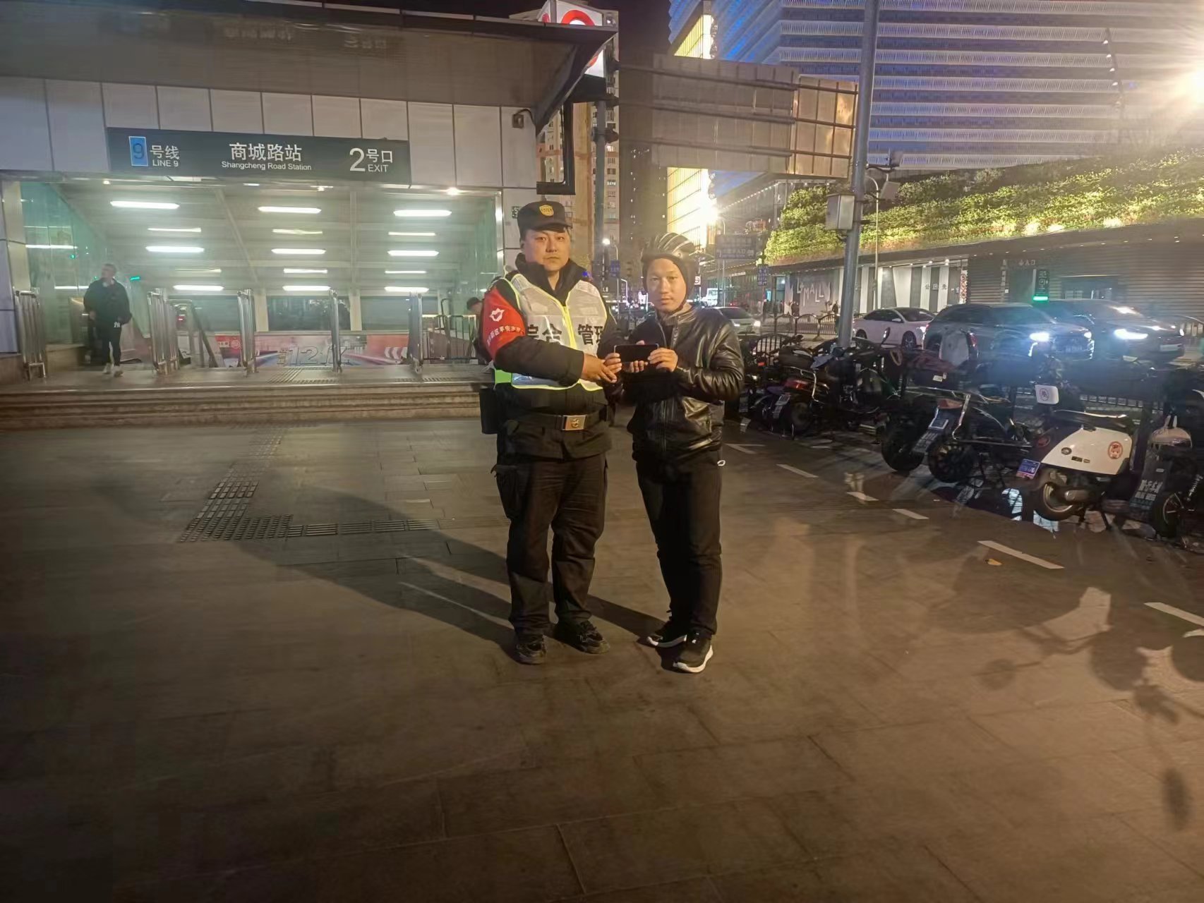11月23日19:30,宗保公司駐浦東新區(qū)陸家嘴綜合管理項目員工董啟義在商城路地鐵9號線2號口附近值勤時,撿到一部華為手機(jī)。董啟義想失主丟了手機(jī),可能會返回尋找,就留在原地等待。過了十幾分鐘,一男子打來電話尋找手機(jī),董啟義了解了相關(guān)信息后,便與男子約定好碰面地點。很快,一位戴著頭盔的男子趕到約定地點。通過人臉識別成功解鎖鎖屏密碼后,董啟義就將手機(jī)交還給了他。男子拿著手機(jī),連連向宗保員工董啟義道謝。