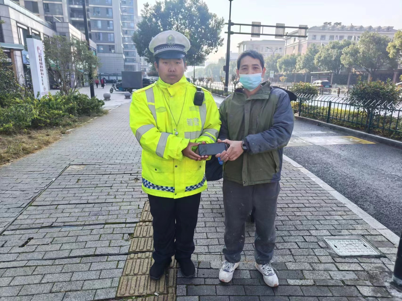 12月5日8:40,浙江民泰公司駐杭州市余杭區(qū)閑林交管輔助項目員工房景紅在上和路閑富北路交叉口值勤時,撿到一部OPPO手機(jī),報告當(dāng)班組長后便在原地等待失主。大約過了30分鐘左右,一位男子打來電話尋找手機(jī)。房景紅與他約好碰面時間地點。很快,一男子趕到現(xiàn)場,經(jīng)核實確認(rèn)其是失主后,房景紅將手機(jī)交還給了他。