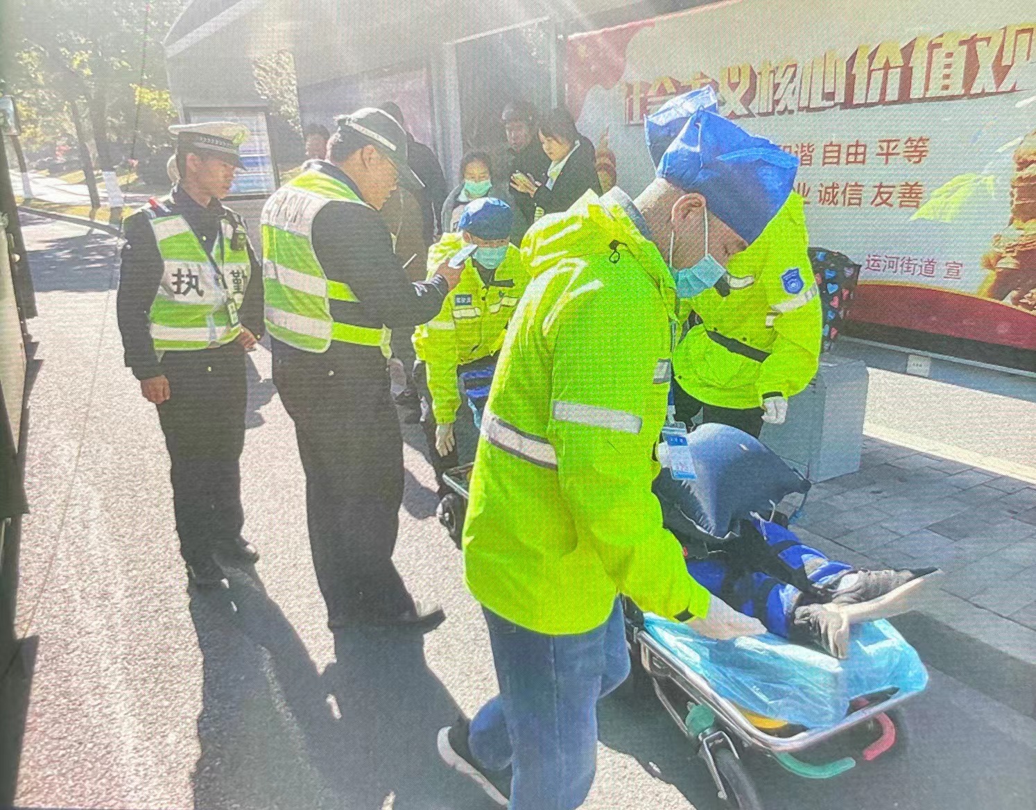 11月21日,浙江民泰公司駐杭州市臨平區(qū)運河街道運河交管項目員工幫助突發(fā)疾病老人就醫(yī)。