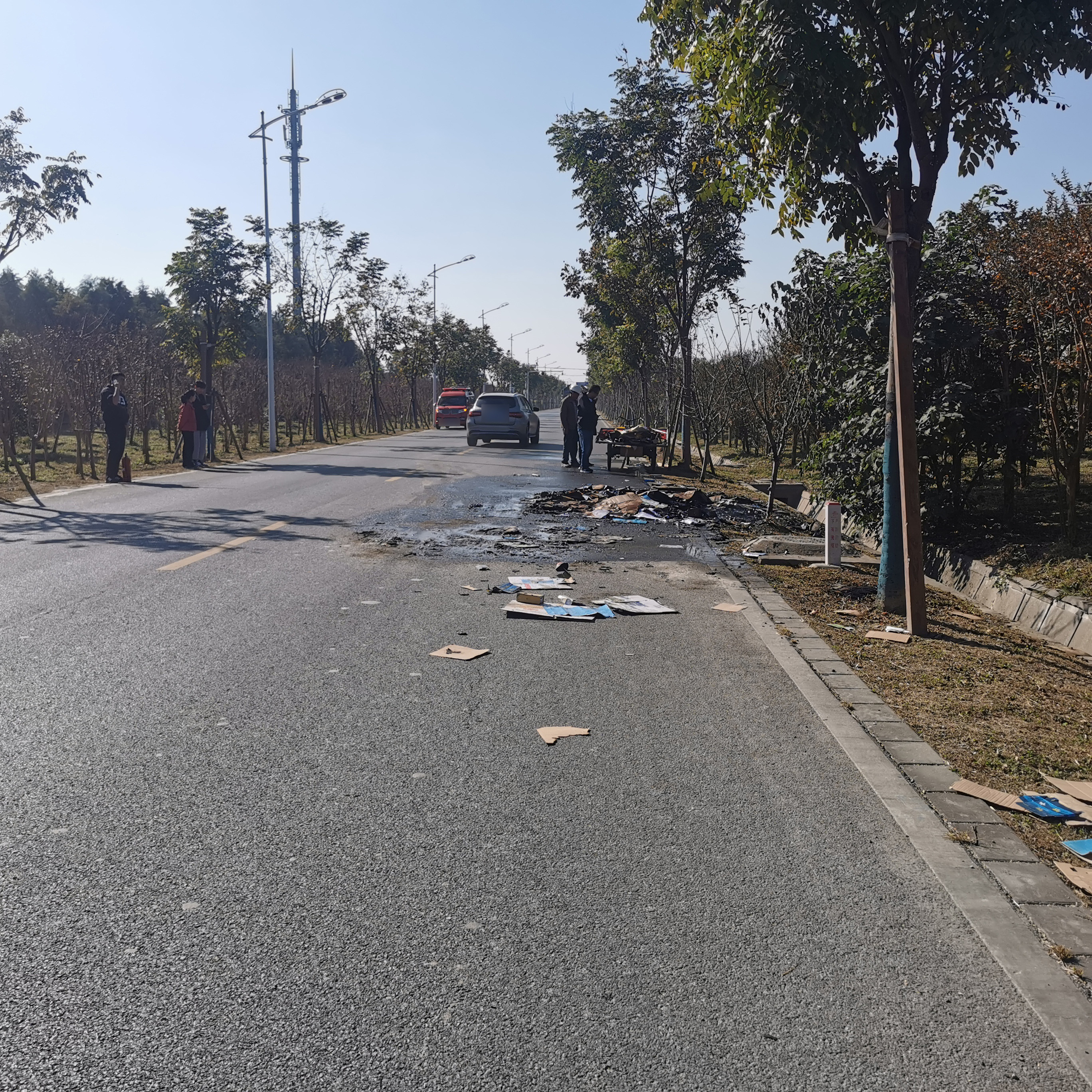 當日12:23,公司員工龍鳳嬌和張軒笛在觀工路與江海南路交叉口向東約150米處巡邏時,發(fā)現(xiàn)正在行駛的一輛電動三輪車上的廢品冒煙著火,而騎車的老人似乎沒有察覺。兩人急忙上前叫停老人,趕緊幫助一起滅火,同時將情況報告班組長戚思功請求支援。