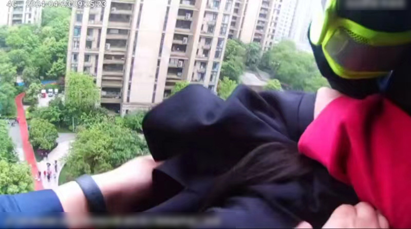 4月23日,浙江民泰公司駐杭州市余杭區(qū)良渚新城派出所項(xiàng)目員工合力成功救下欲跳樓輕生女子。