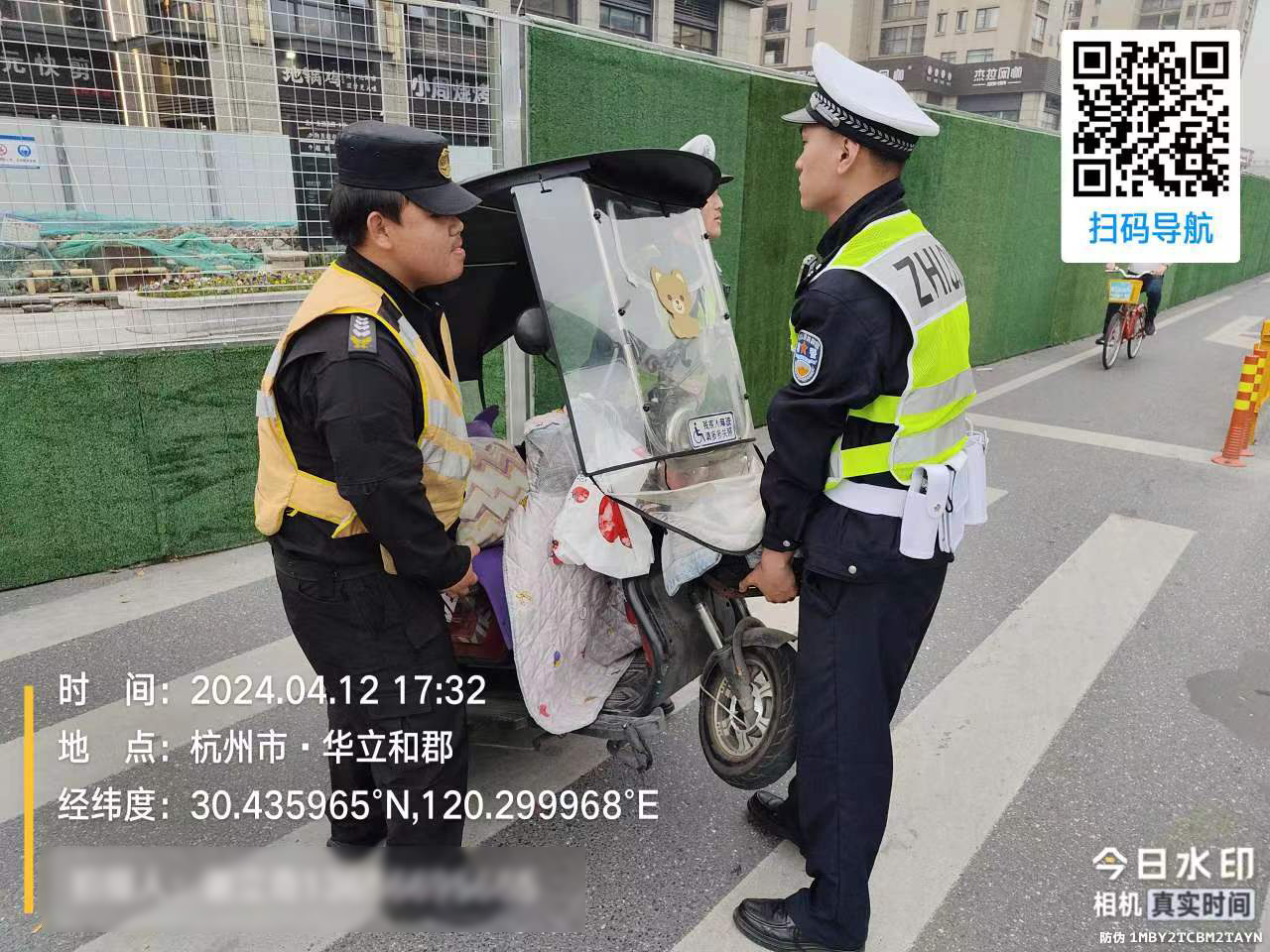 4月12日,浙江民泰公司駐杭州市臨平區(qū)東湖交管輔助項(xiàng)目員工熱心幫助代步車(chē)女士。