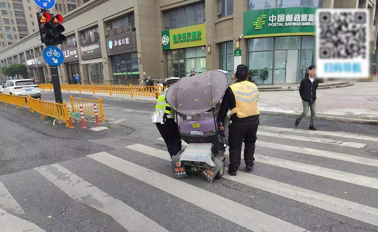 當(dāng)日17:30,公司員工武旭在東湖北路超峰東路路口執(zhí)勤時(shí),看到一輛電動(dòng)代步車(chē)停在馬路中間,便趕緊上前詢(xún)問(wèn)。原來(lái),駕駛員是一名腿腳不便的女士,代步車(chē)突發(fā)狀況壞在路上,女士正焦急地不知該怎么辦。