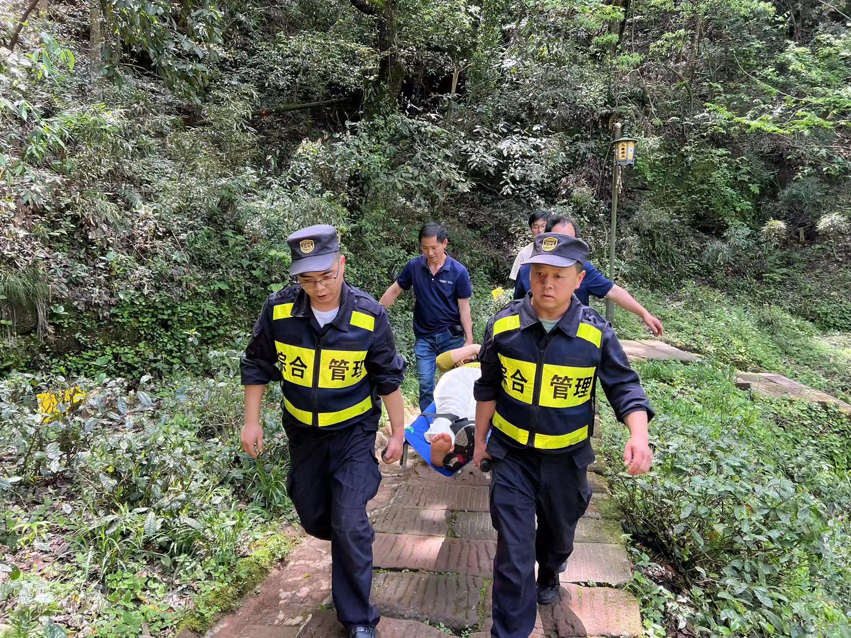 游客腳踝扭傷被困 員工合力擔(dān)架送醫(yī)