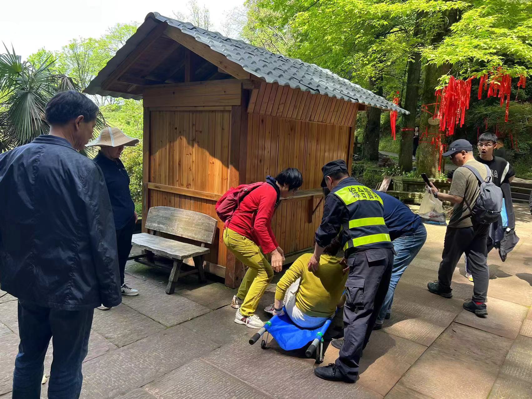 4月18日,宗保公司駐黃山市齊云山景區(qū)項(xiàng)目員工熱心幫助崴傷腳踝的女士。