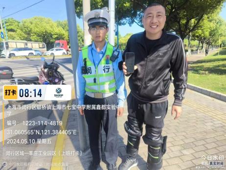 5月14日8:17,宗保公司駐閔行區(qū)虹橋交管輔助項(xiàng)目員工殷天門在吳中路合川路路口執(zhí)勤時(shí),撿到一部VIVO手機(jī),詢問周圍路人無人認(rèn)領(lǐng)后,便將情況報(bào)告了班組長(zhǎng),并按指示隨時(shí)注意接聽失主來電。直至下班時(shí)間,仍然沒有人打來電話尋找,殷天門就將手機(jī)上交到虹橋派出所,由派出所民警尋找失主。