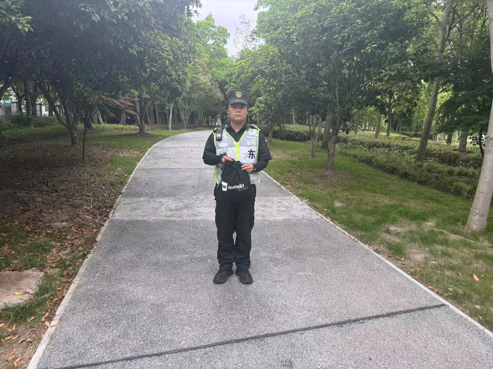 5月25日9:40,宗保公司駐浦東新區(qū)康橋鎮(zhèn)沔青公園項(xiàng)目員工李云浩在野渡橋附近巡查時(shí),撿到一個(gè)黑色手提包, 內(nèi)有手機(jī)、手表等物品,隨即便將情況報(bào)告了帶班隊(duì)長(zhǎng),并按指示將手提包送到公園監(jiān)控室。大約過(guò)了半個(gè)小時(shí),手提包內(nèi)的手機(jī)鈴聲響起,一位自稱(chēng)是失主的女士打來(lái)電話(huà)。李云浩問(wèn)清手提包顏色、包內(nèi)物品后,與她約好在監(jiān)控室碰面。不一會(huì)兒,一位身穿藍(lán)色防曬衣的女士趕到現(xiàn)場(chǎng)。李云浩核實(shí)確認(rèn)其是失主后,就將手提包和物品一并交還給了她。女士拿到手提包,連連向員工李云浩道謝。