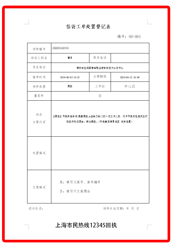 男子見(jiàn)漆遼強(qiáng)堅(jiān)決不肯收紅包,被他拾金不昧的行為所感動(dòng),便主動(dòng)撥打了上海市民熱線(xiàn)12345,點(diǎn)名表?yè)P(yáng)了宗保公司員工漆遼強(qiáng)撿到貴重物品不動(dòng)心、主動(dòng)等待交還失主的高尚品德。