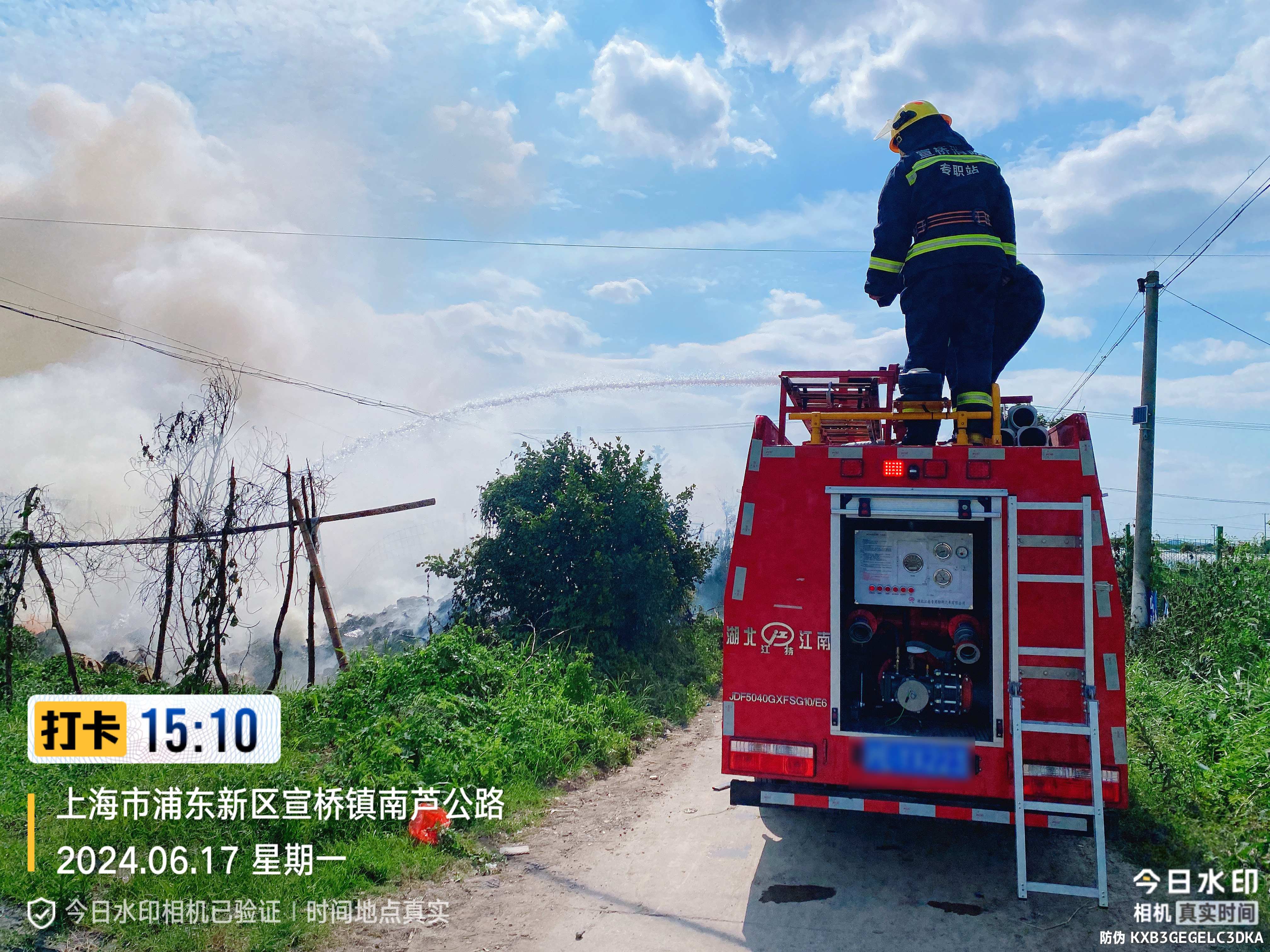 6月17日,宗保公司駐浦東新區(qū)宣橋鎮(zhèn)專職消防站(陸橋分站)員工快速出警,及時(shí)撲滅一起火情。