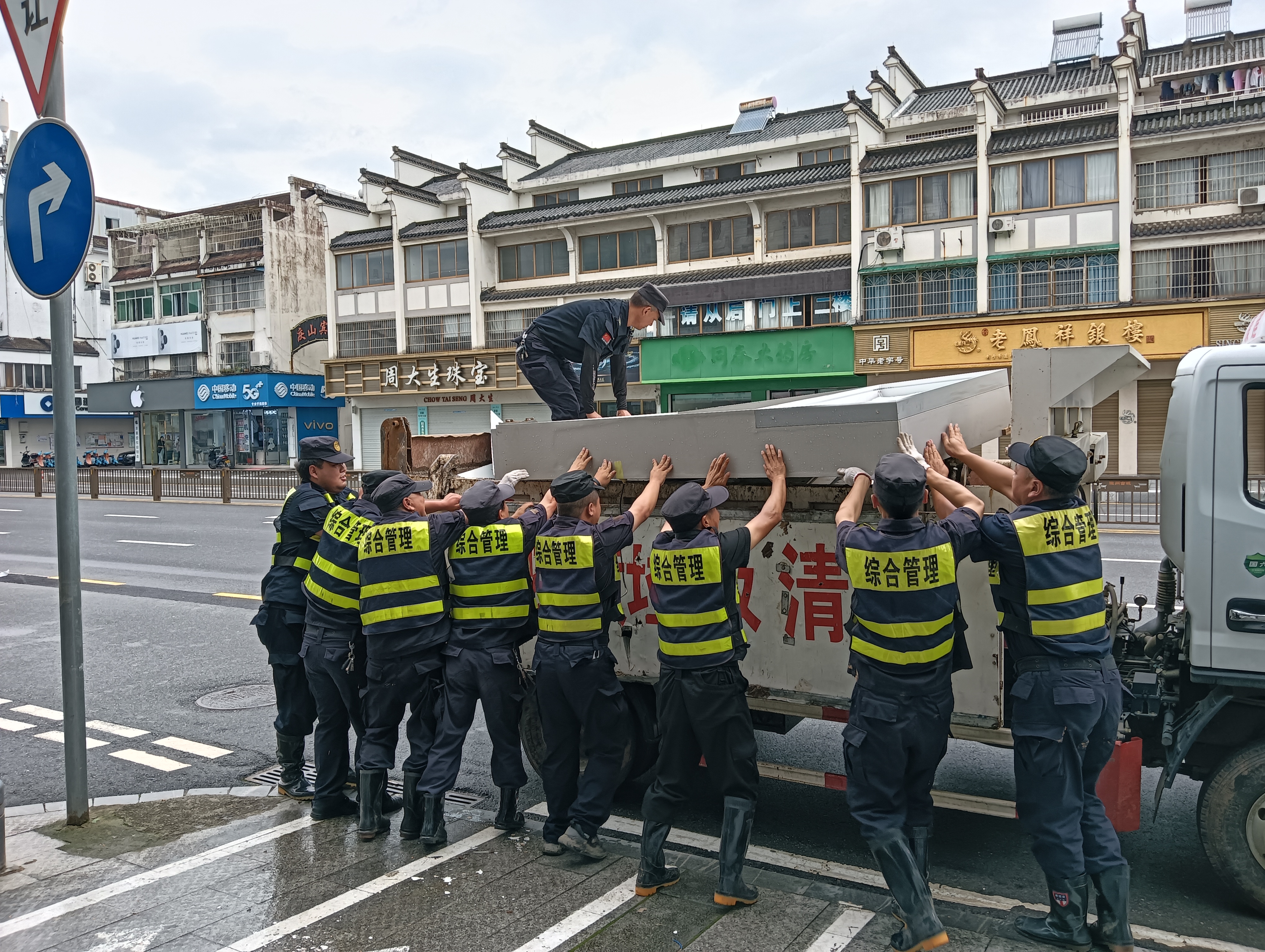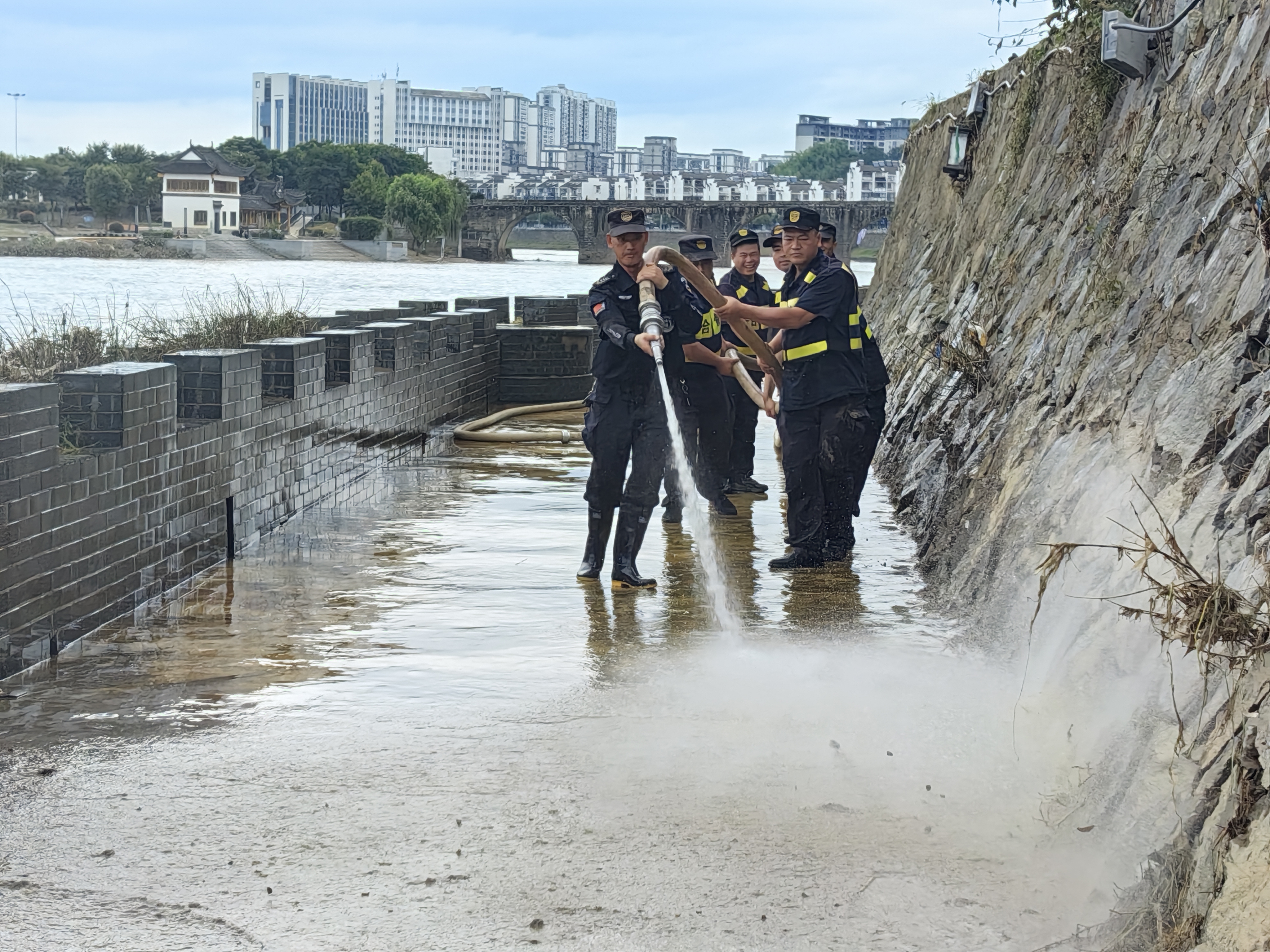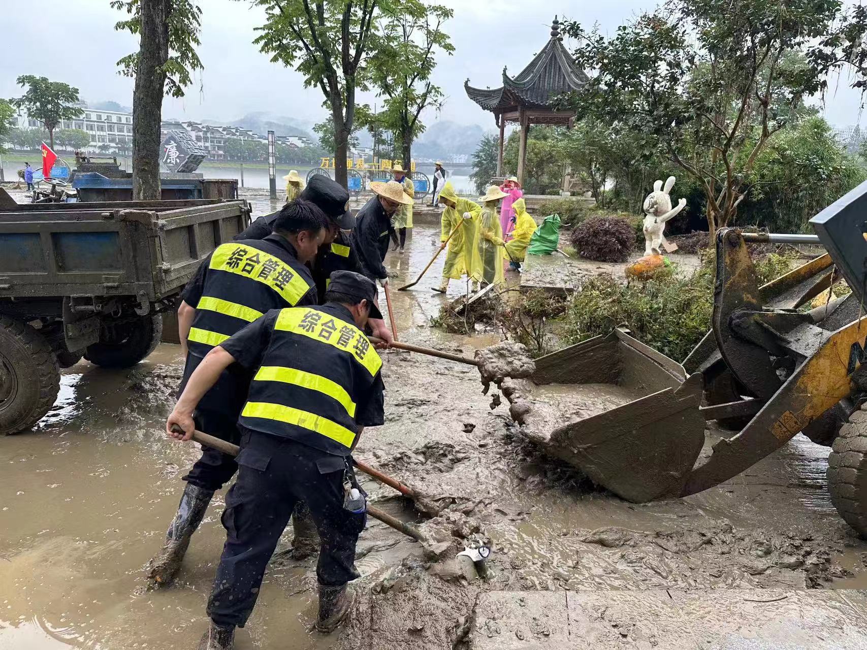 6月20日,安徽黃山市普降大暴雨,河流猛漲,山洪暴發(fā),歙縣多處路段出現(xiàn)積水,公司駐歙縣市容項(xiàng)目接到縣城管局抗洪救災(zāi)要求后,立即開展抗洪搶險(xiǎn)救援。他們協(xié)助轉(zhuǎn)移受困群眾,全力清理垃圾淤泥,仔細(xì)排查隱患區(qū)域,用實(shí)際行動(dòng)展現(xiàn)了公司員工的良好形象。